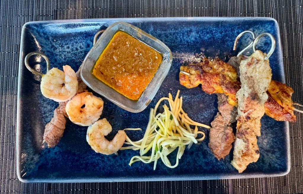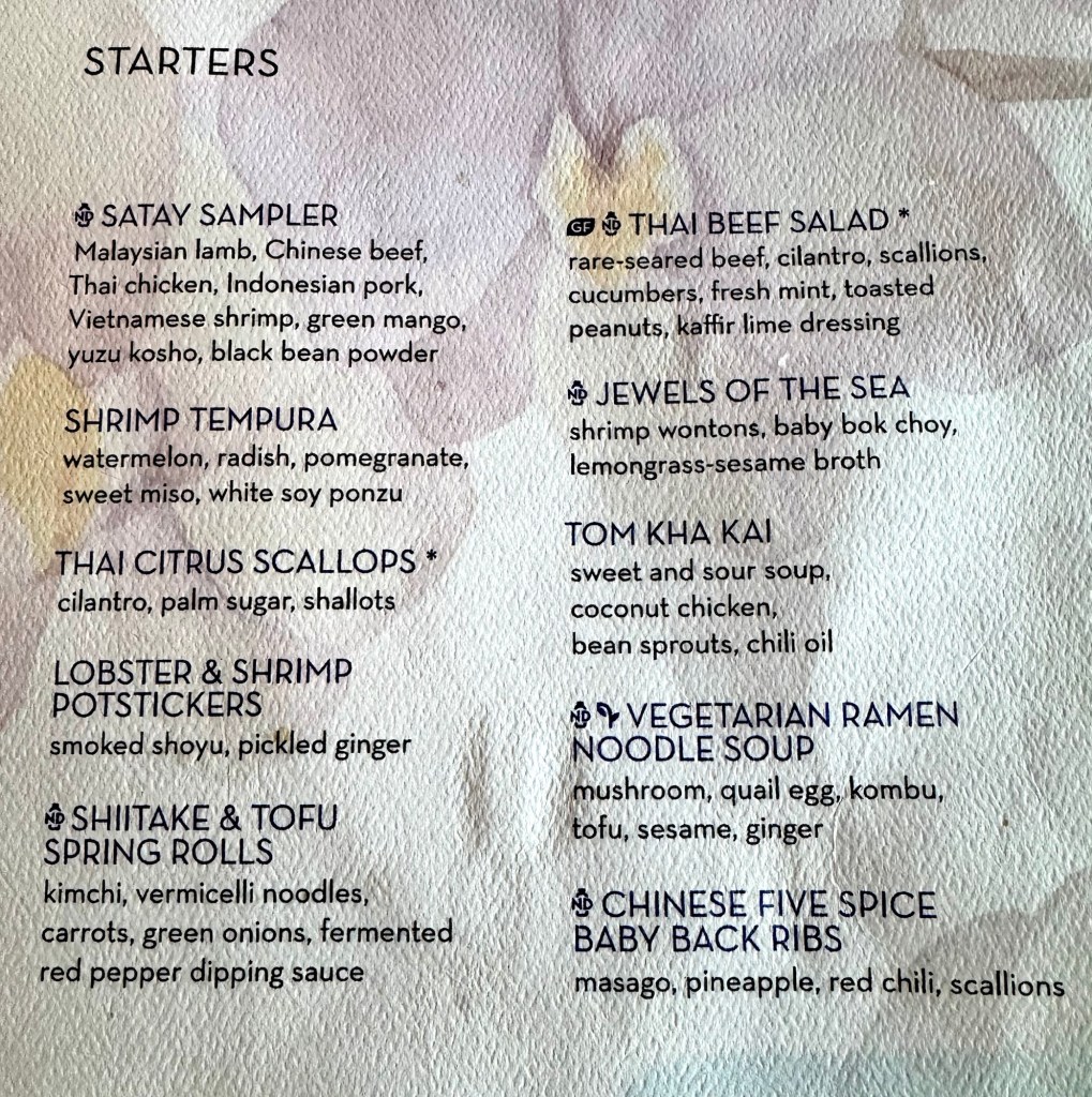 We then got ready for dinner. Since it was formal night we got all dressed up and went to the Asian specialty restaurant Tamarind. We were there a few nights ago and loved the food. For appetizers we both got the Shrimp and Lobster (of course!) pot stickers (I actually got a double order, they are sooo good!). We both also got the Satay Sampler for the second appetizer. For the main I got the Crispy Duck. For dessert we both got the Yuzu Cheesecake. Everything was deeee-licious!