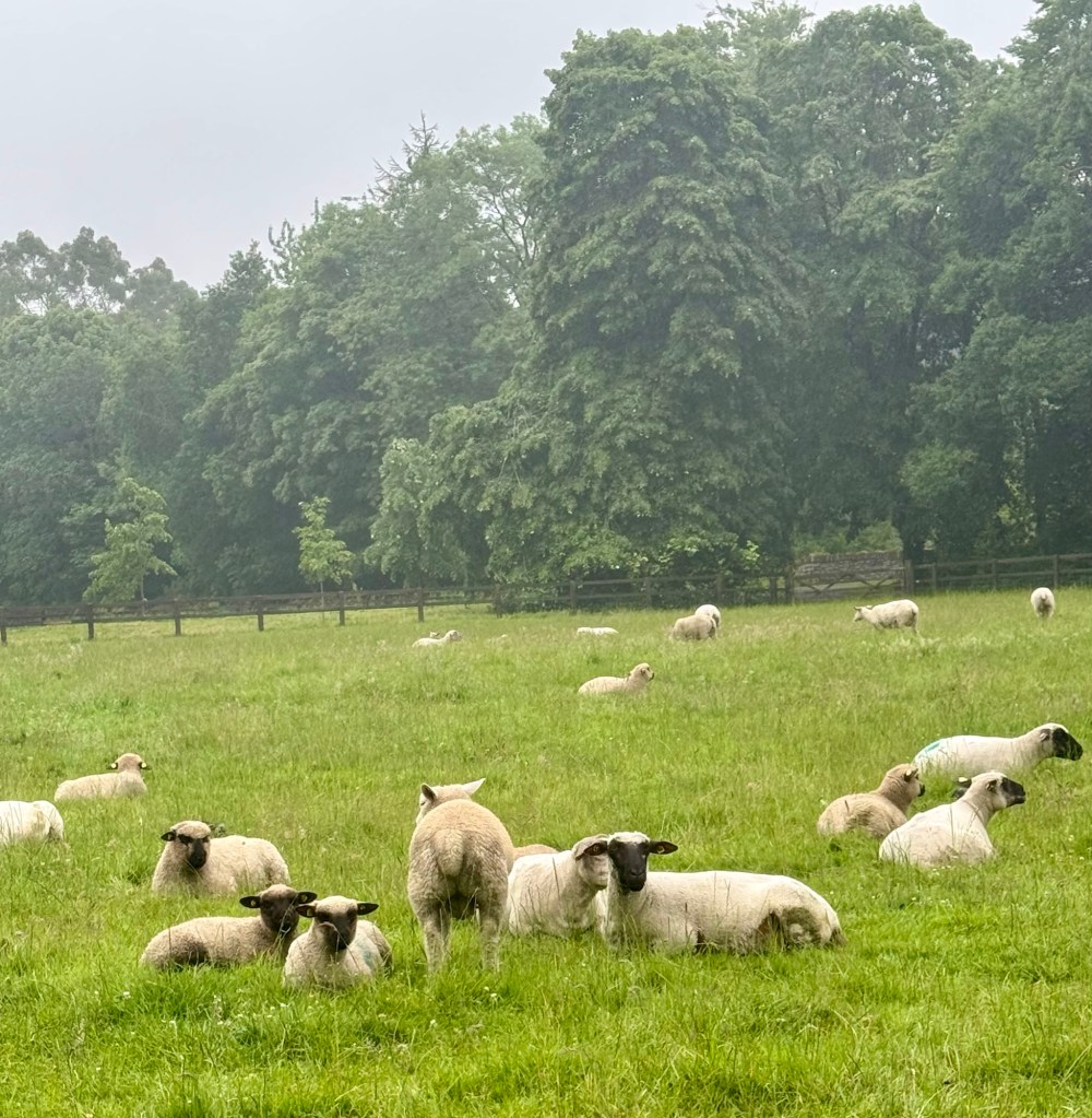 But the castle and garden were really cool. It was a dreary day (our driver called it dull!) and the low clouds gave the castle a mysterious look. The gardens were very nice and we saw horses, cows and sheep on the grounds. And they even had an outlet store within the castle grounds. Shopping!! Lol