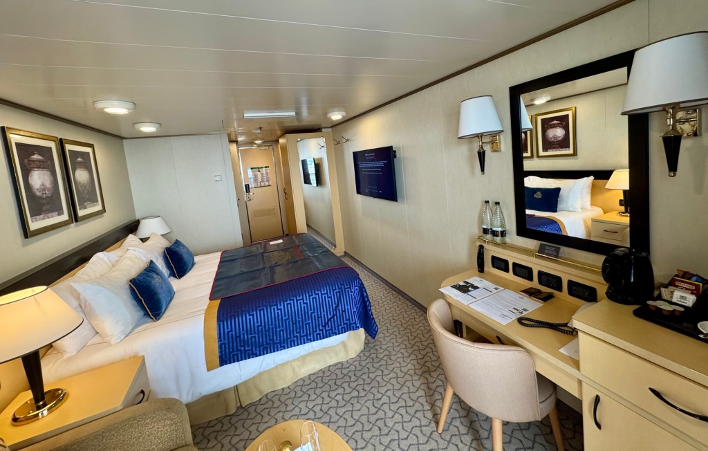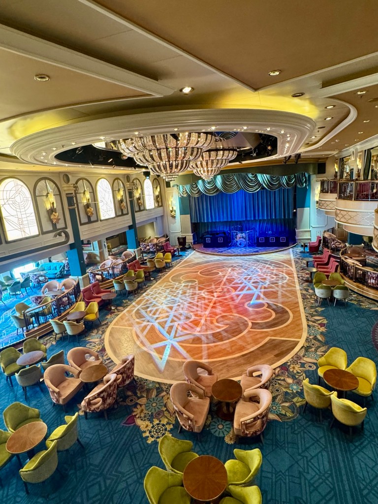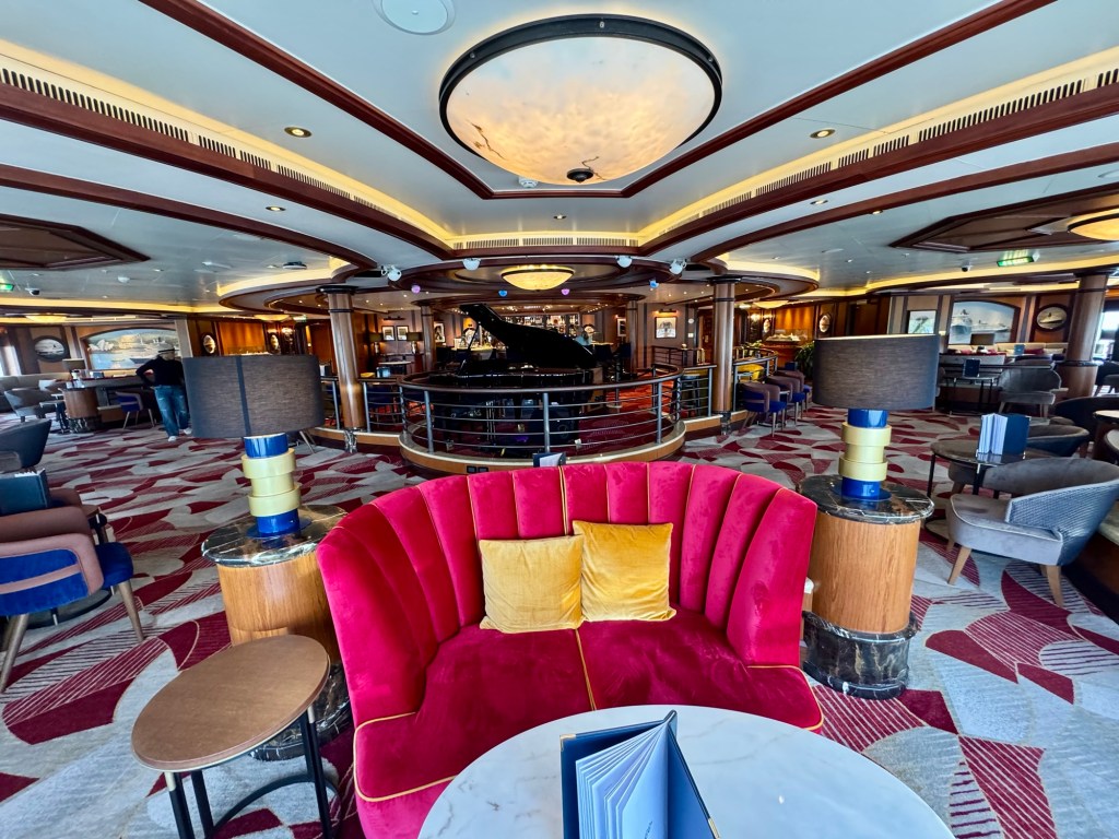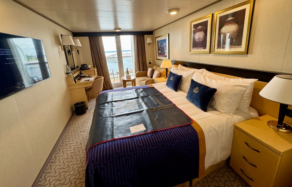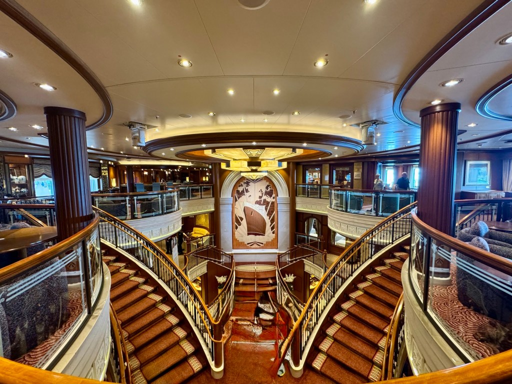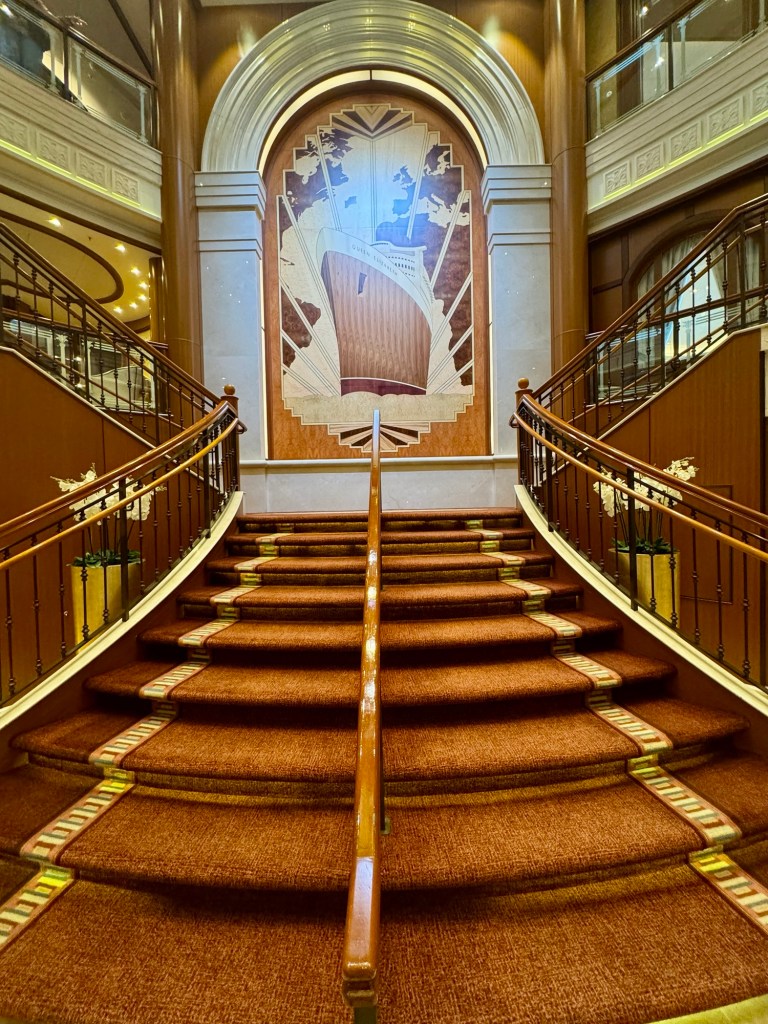 We had a nice lunch, toured the ship and got settled into our room and unpacked all our stuff. At first blush, this is a really nice ship. Very classy, elegant and has sort of an old school ocean liner look. We both really like the look and feel of the ship. But we’ll wait and see how the food, service and entertainment is. The good news is we’re excited about the daily program showing all the live music options. Hope they’re all good!