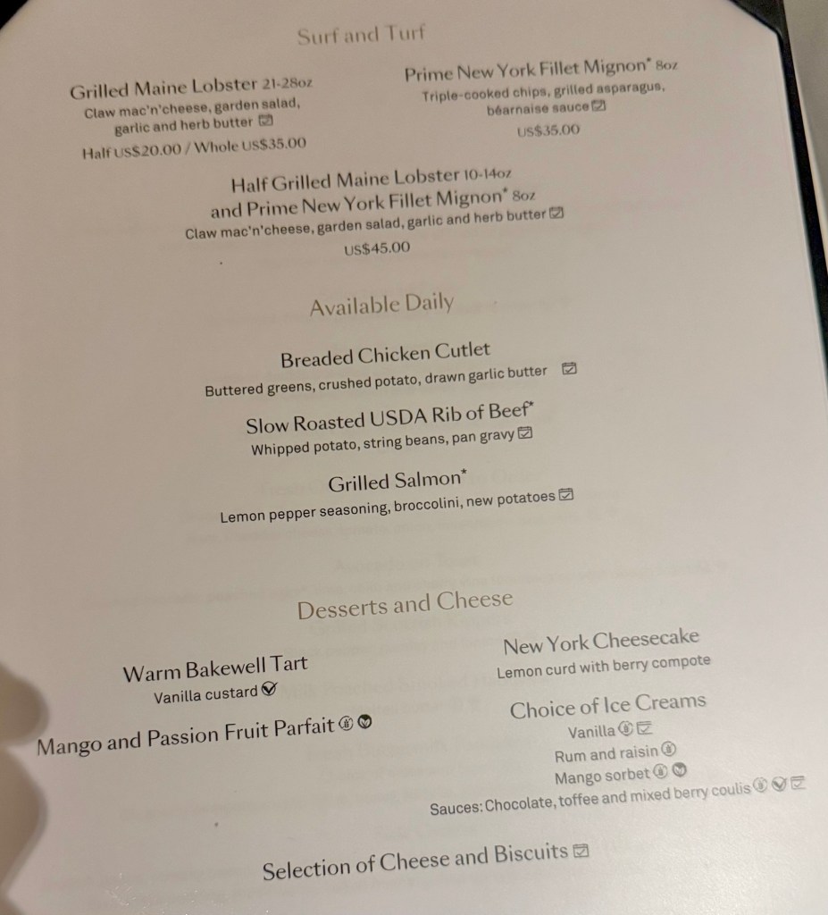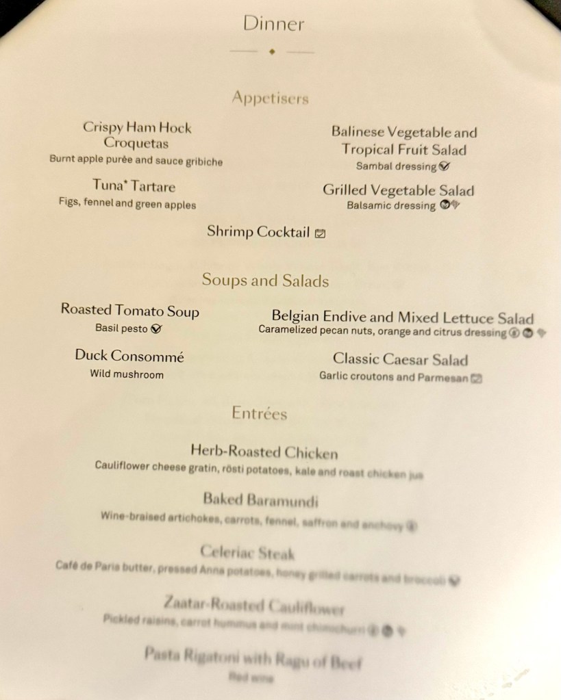 The menu was back to being so-so. OK, OK I know we’re spoiled by Regent Seven Seas but to be honest even Holland America’s menu was better. But hey, we ain’t going hungry!