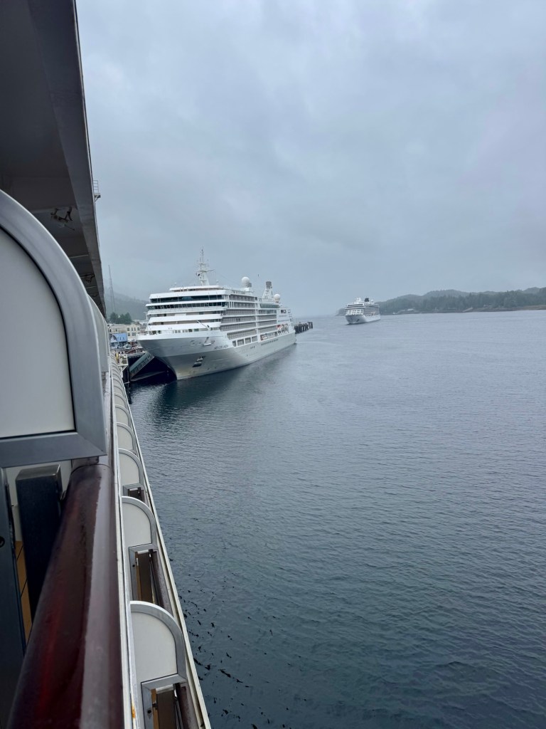 Hi Folks! Today we are docked in Ketchikan, Alaska. Not only is it the salmon capital of the world but it’s also the rain capital of the world! So that’s why it rained all day!?! But even with the rain it was beautiful!