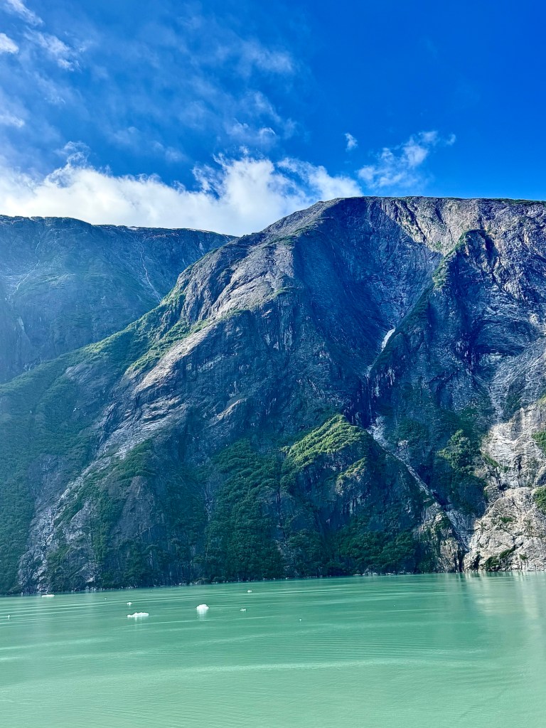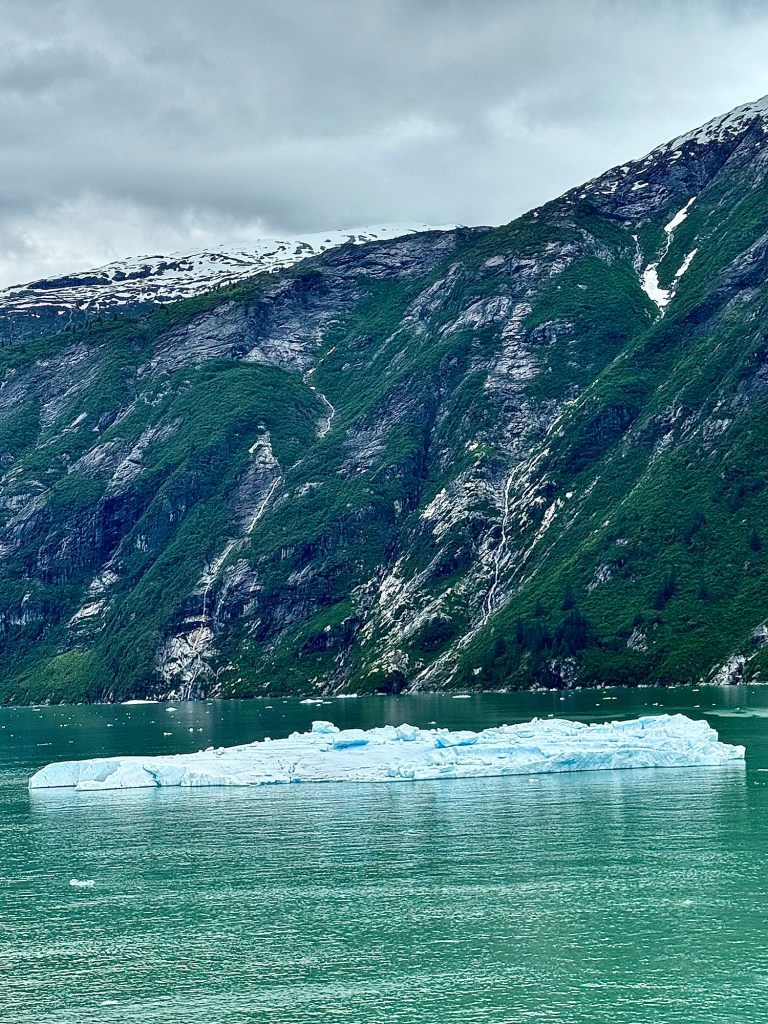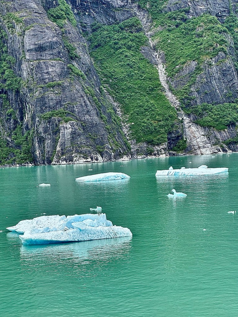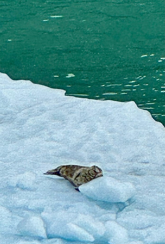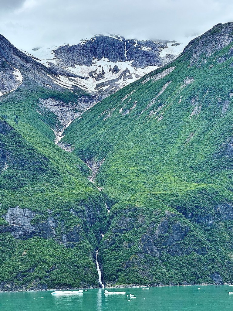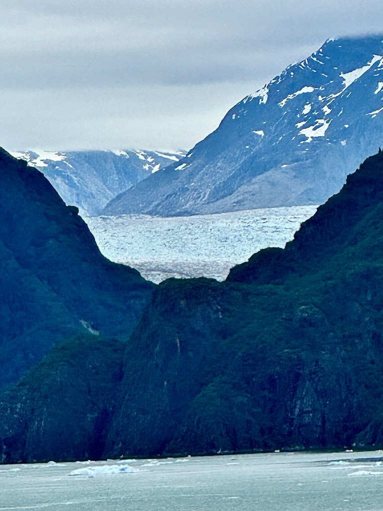 Water Rolling Downhill!Iceberg Parade!Huge Iceberg! (Titanic!!)More Narrow Passageways!Cute Little Harbor Seal on an Iceberg!Ready to Turn the Corner!Sawyer Glacier!Another View of Sawyer Glacier!Us at Sawyer Glacier!Sun’s Out! Huge Mountain!Massive Rock Face!Leaving Tracy Arm Fjord!