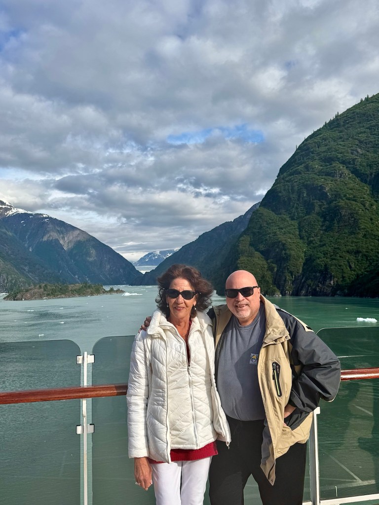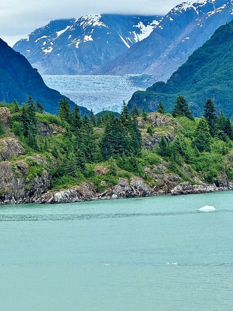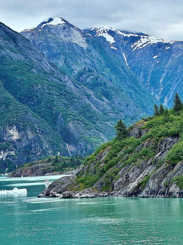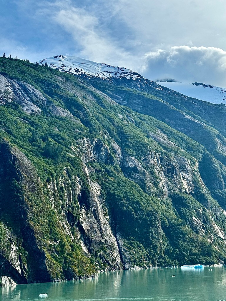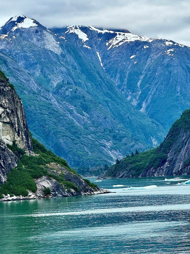 Water Rolling Downhill!Iceberg Parade!Huge Iceberg! (Titanic!!)More Narrow Passageways!Cute Little Harbor Seal on an Iceberg!Ready to Turn the Corner!Sawyer Glacier!Another View of Sawyer Glacier!Us at Sawyer Glacier!Sun’s Out! Huge Mountain!Massive Rock Face!Leaving Tracy Arm Fjord!