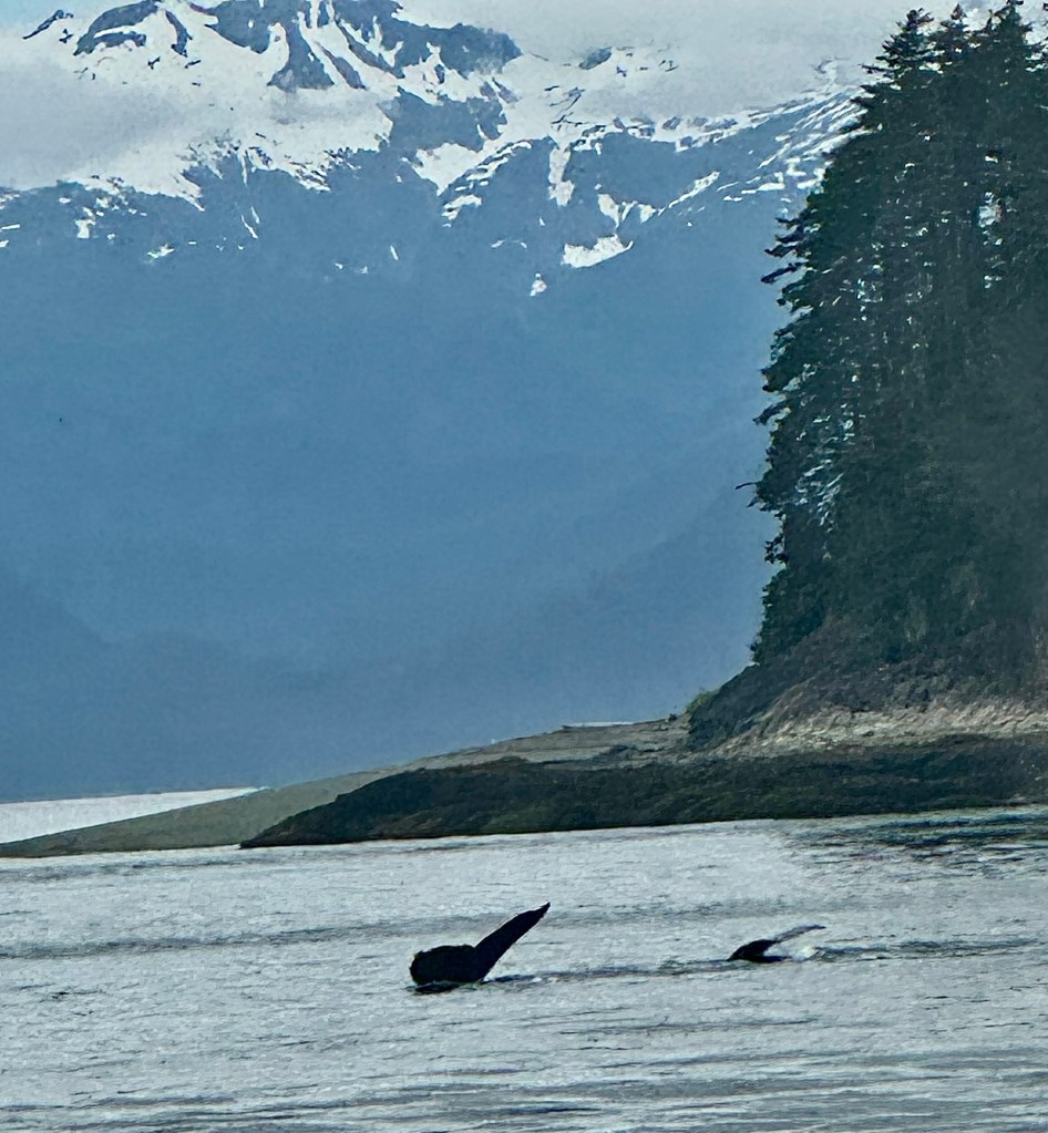 Posted on July 17, 2025 by Jeff DeMaria Wed July 16, 2025 3 Whales! Riddler, Juneau & Fritz! Double Whale Tail! Same Double Tail! More Beautiful Scenery! 4 Whales! Juneau, Fritz, Riddler & ? More Beautiful Scenery! Juneau and her Calf Fritz! Juneau and her Calf Fritz Again! Sea Lions! Lighthouse! Us on the Whale Watching Boat! Another Beautiful Mountain Range! Mendenhall Glacier! Us at Mendenhall Glacier! Share this: Click to share on X (Opens in new window) X Click to share on Facebook (Opens in new window) Facebook Like Loading...
