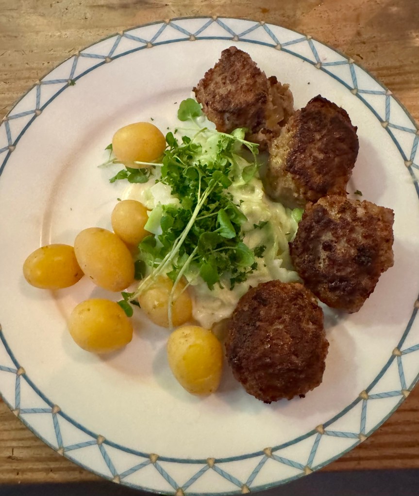 But the highlight of the night was our meal at the oldest restaurant in Copenhagen named Nyhavns Faergekro. We had a traditional Danish dish called Frikadeller, which is pork meatballs. They served it with creamed fennel and potatoes. It was really tasty! They even gave us dessert of chocolate pie with ice cream. Yum Yum!