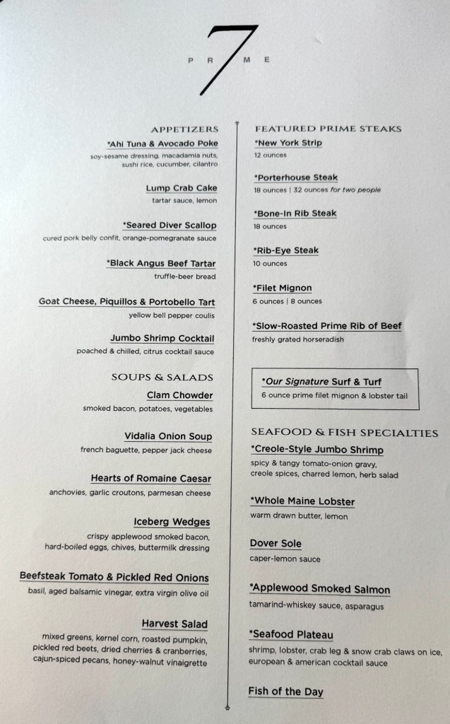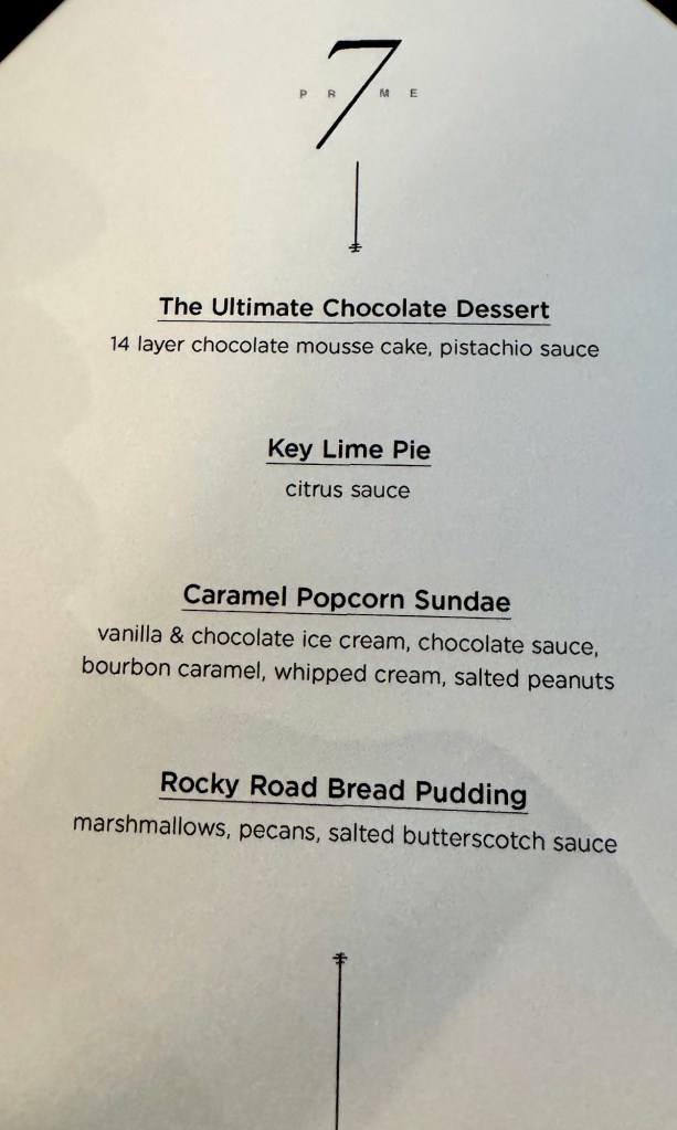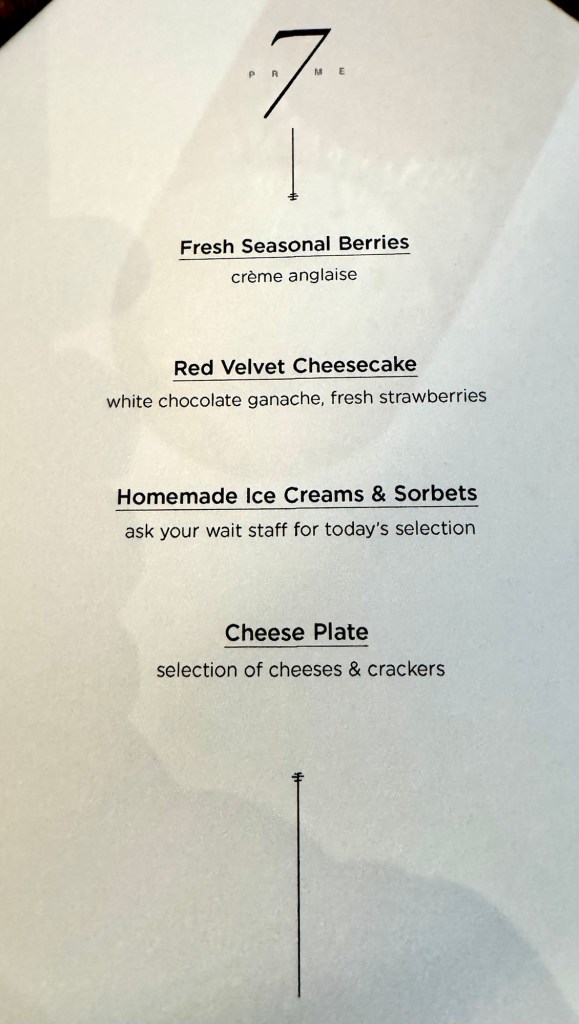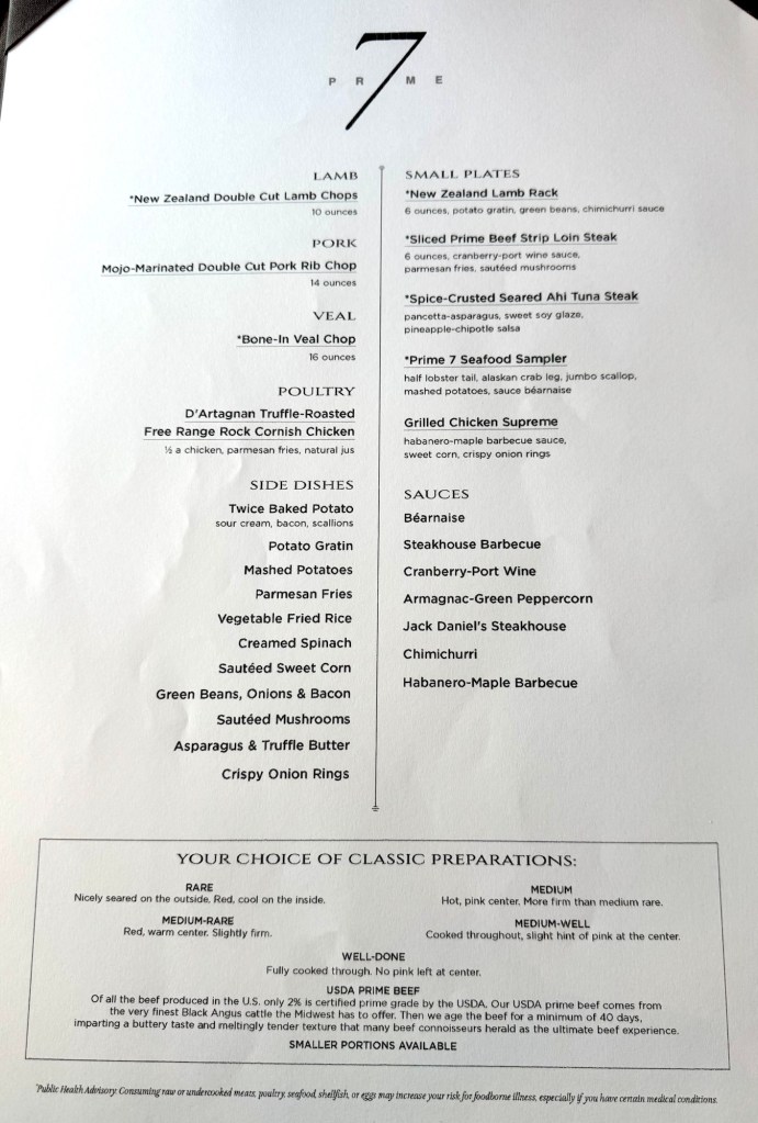 Hi Again Folks! We had another night of amazing food and great entertainment! We started off with dinner at Prime 7 which I would say is one of the best steakhouses at sea. The food and service there is top notch.