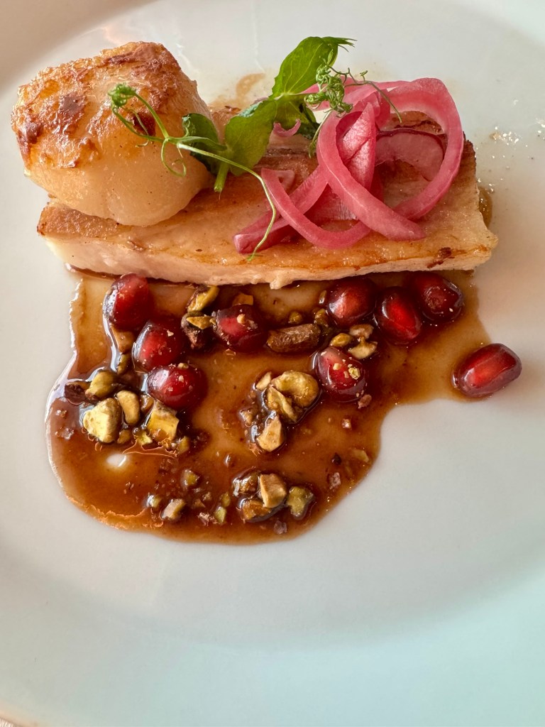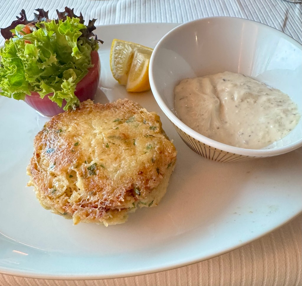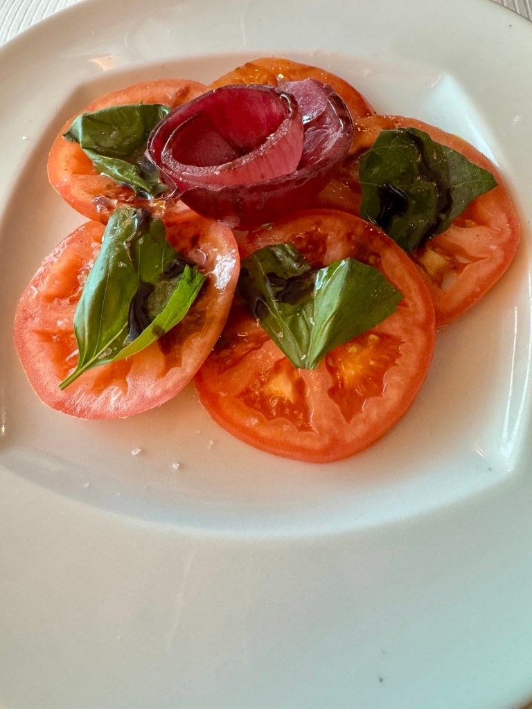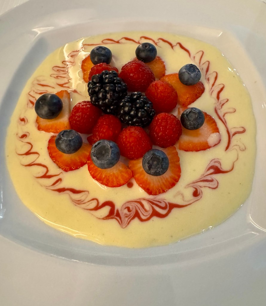 I was trying to eat a little healthier this cruise but tonight I said forget that! This food is too good! So they always start you off with this smoky tomato soup as an amuse bouche. I then piled it on with three starters which were the Lump Crab Cake, the Seared Diver Scallop with Pork Belly Confit, and the Beefsteak Tomato and Pickled Red Onion Salad. For my main I had this amazing Bone-In Ribeye Steal cooked to perfection. Whew that was a lot of food! So I went light with the dessert and got the Fresh Seasonal Berries. Stuffed!
