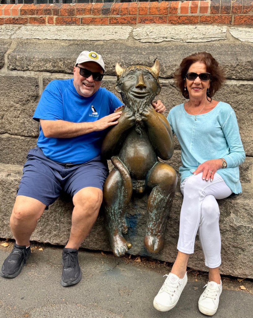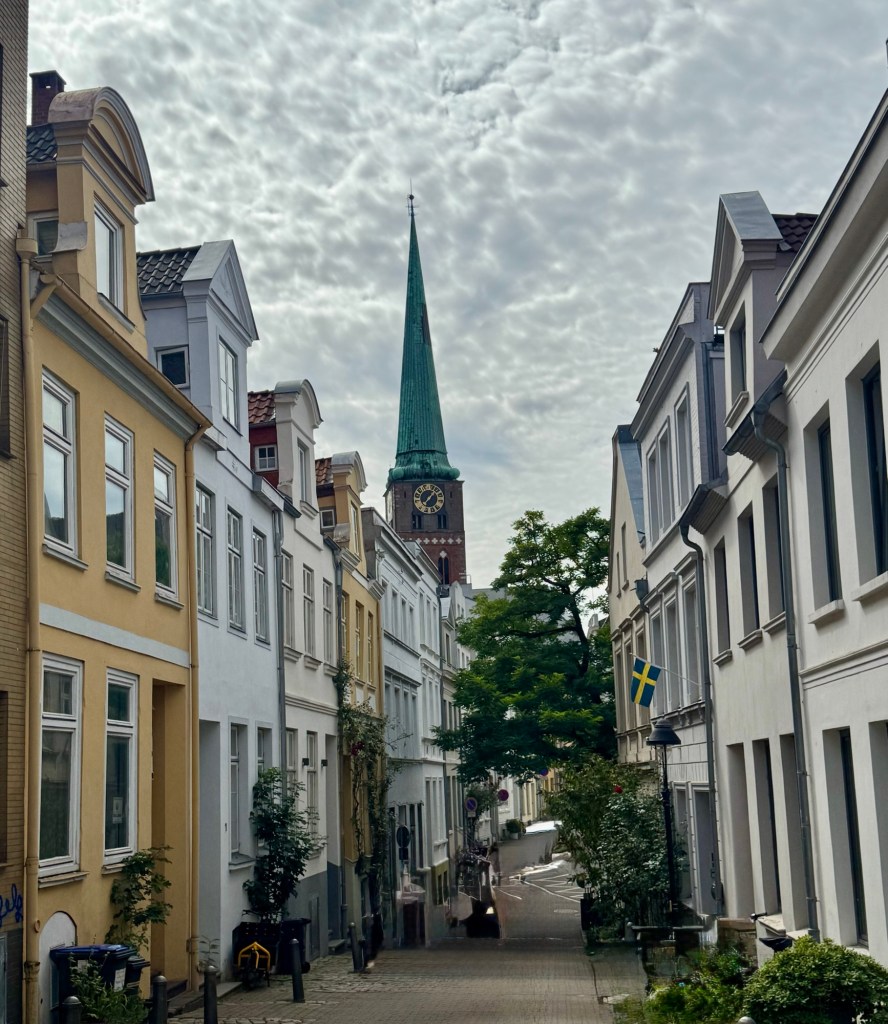 Lubeck is a beautiful town and we had perfect weather to walk around (sunny and 72). I believe we saw all seven towers (but who’s counting!) as well as some quaint streets and alleyways. We saw a statue of a devil sitting next to St Mary’s church that had a funny story tied to it.