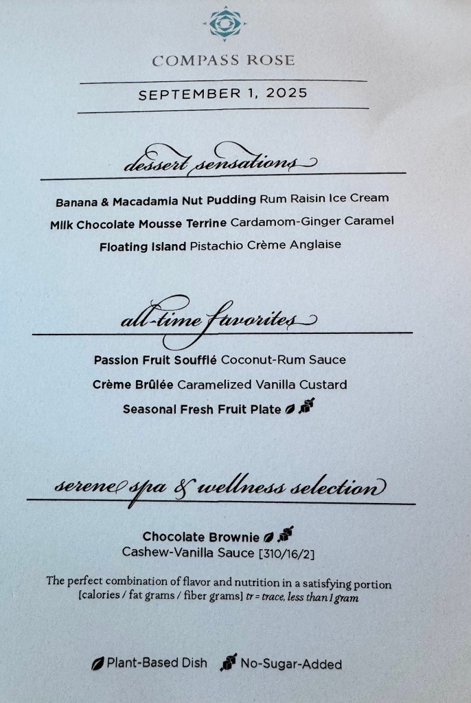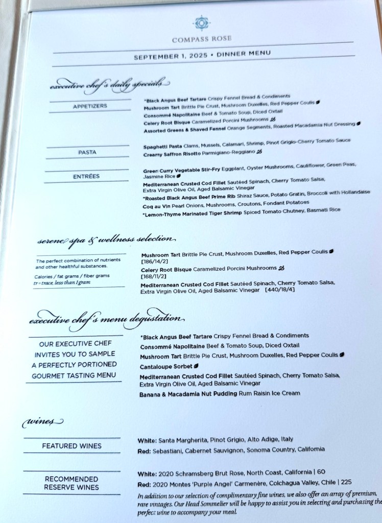 Hi Again All! We enjoyed another evening of great food and entertainment. We had dinner in Compass Rose and got the table again with our assistant waiter Okie that we like.