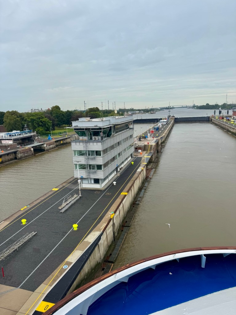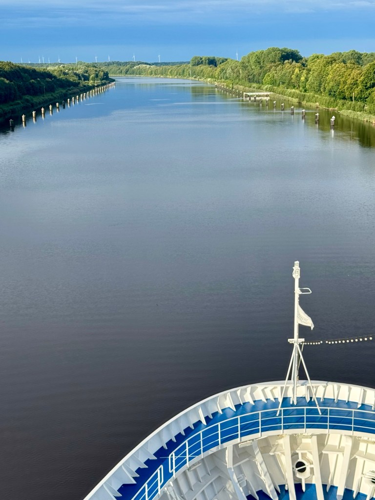 It’s a lot different than the Panama Canal (which we’ll be traversing this coming January!) in that the Kiel is longer (61 miles vs 51 miles), has fewer locks and does not charge tolls.