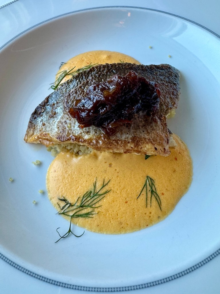 I had the Cream of Artichoke Soup and the Assorted Greens Salad for my starters. For my main I had the Spiced Fresh Dorade Filet. To finish off I had the Apple & Blueberry Crumble Tart. All were magnifico!