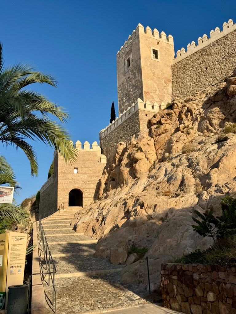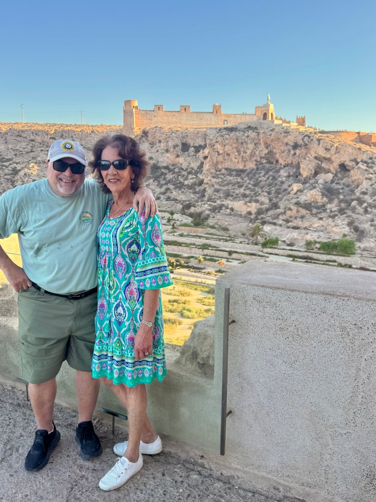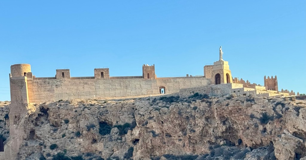 Hi Gang! We’re still in sunny Spain but today we’re docked in the city of Almeria. Almeria is a city in southeast Spain with a population of 200,000. One of their key buildings is the Alcazaba, an imposing Moorish fortress overlooking the city. Another is the fortified, 16th century Almeria Cathedral that has a Gothic ribbed ceiling.