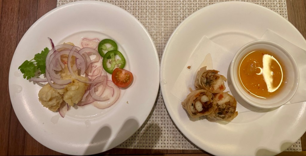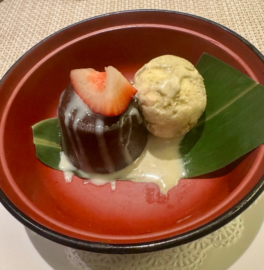 The portions were small (that’s what I told myself!) so I tried a lot of them! And I got my lobster fix in with an Asian flair! For my starters I had the Lobster Tacos (cutest little things you’ve ever seen), the Lobster Tempura, the Rock Shrimp Tempura, the Soft Shell Crab Spring Rolls, and the Miso Soup. Whew…. But they were all SMALL! Lol. For my main I had the Nobu-Style Black Cod with Miso. And for dessert (yes, I snuck in dessert!) I had the Chocolate Soufflé Cake! Everything was delicious!