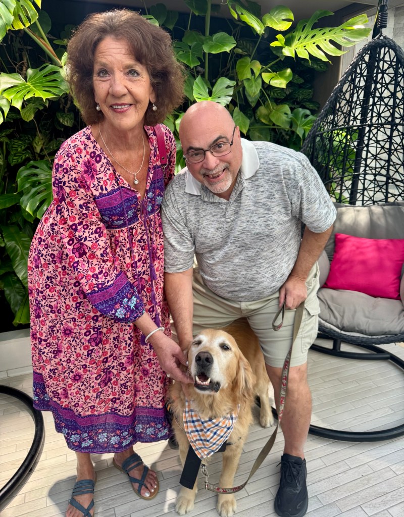 PS: Believe it or not, there has been a Golden Retriever Service Dog on our cruise this week and we finally got to meet him, pet him and take a pic with him. I had a Golden for 14 years while the kids were young and they are special dogs! I have two very amazing “grand dogs” and one of them is a Golden. Life is good!