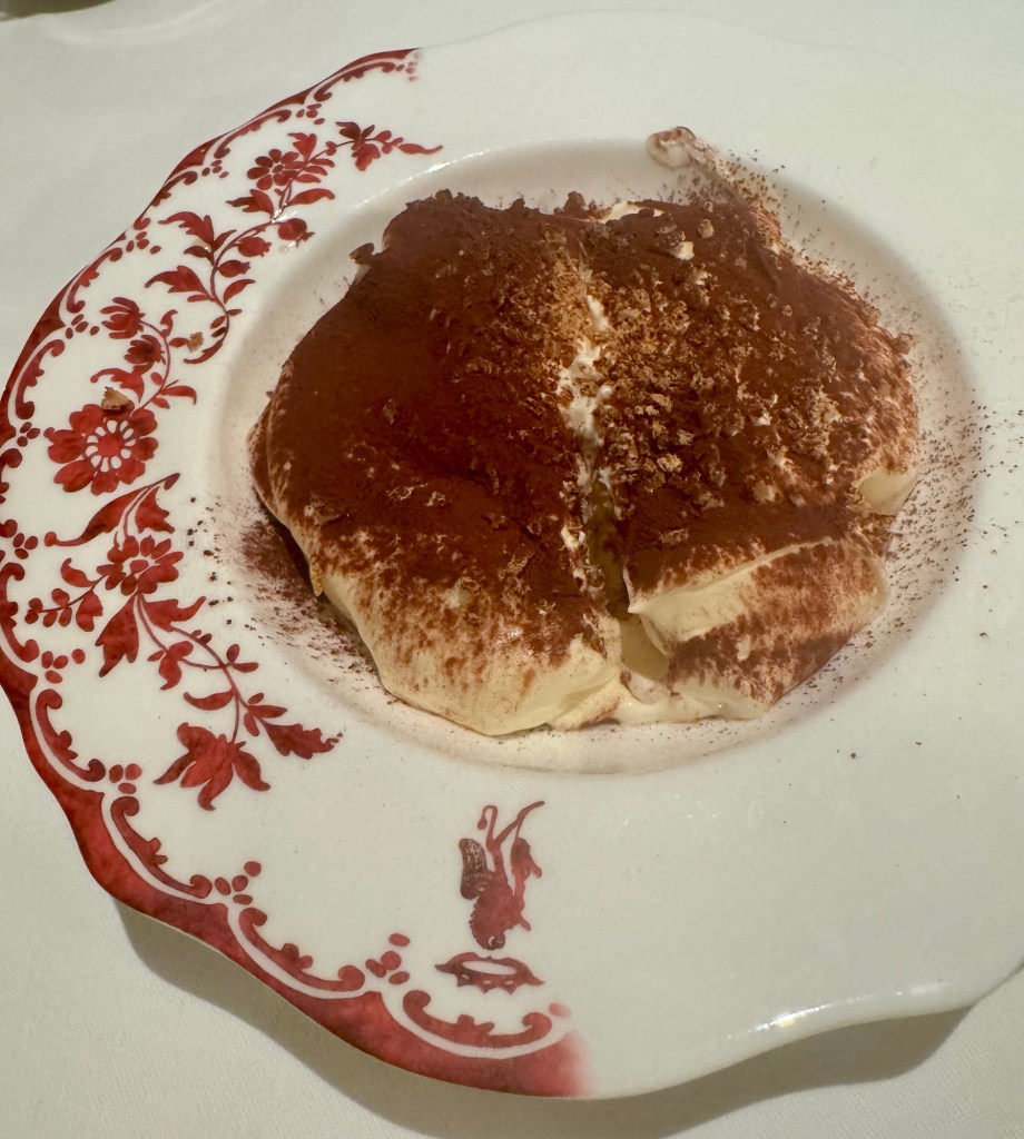 I wanted to try everything but ended up ordering the Tuna Carpaccio and an appetizer portion of the Lasagne for my starters. The Lasagne was served in this cute little baking pan and I swear I didn’t eat the whole pan! For my main I had the Branzino. We finished dinner with this amazing Tiramisu that they made table side. Wow… what a great meal! Nice way to end the cruise.