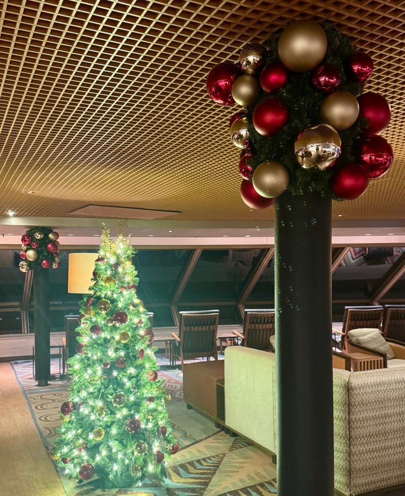PS: Since I didn’t have any food pics, I included a few of the other Christmas trees around the ship including one decorated with all Lewie the Lion stuffies!