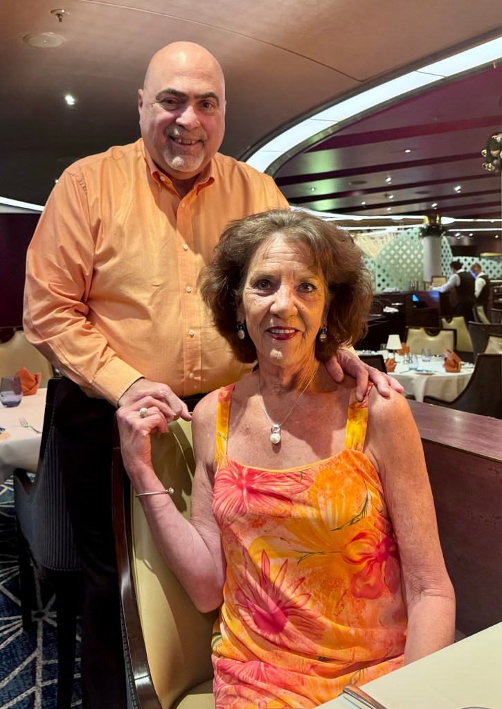 Hi Again All! Tonight was Orange Night! On every cruise, Holland pays homage to the Dutch House of Orange and asks people to wear their orange. They also have an Orange Party with lots of orange liquor. So we wore our best orange duds. “Orange” you glad you’re not here! Lol