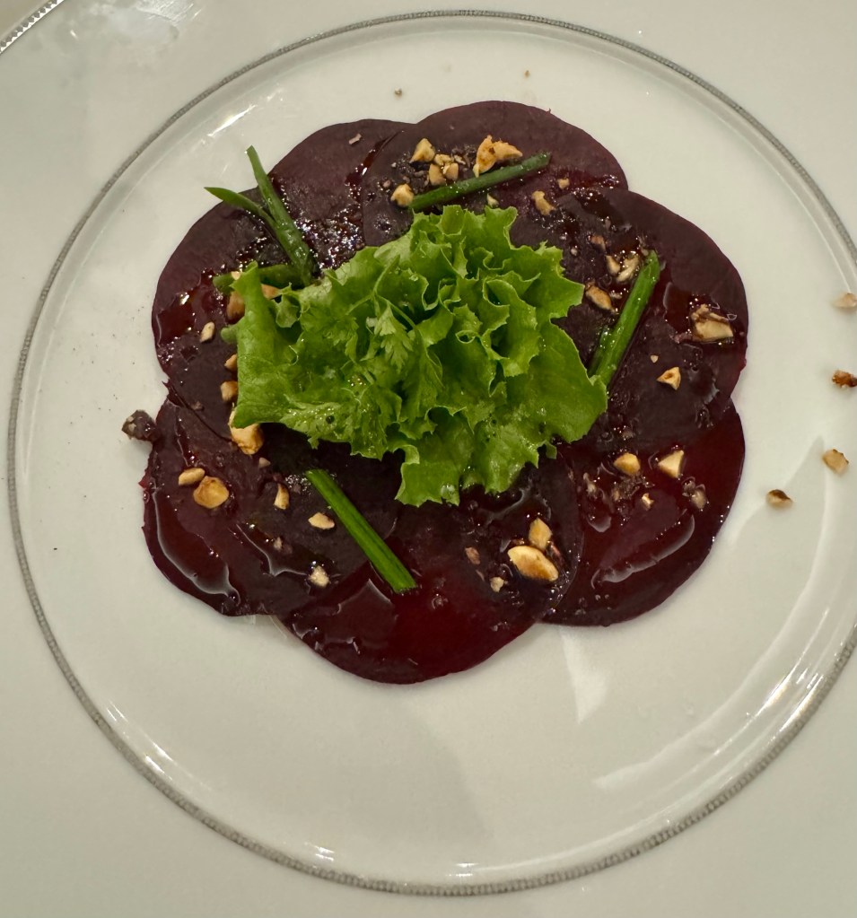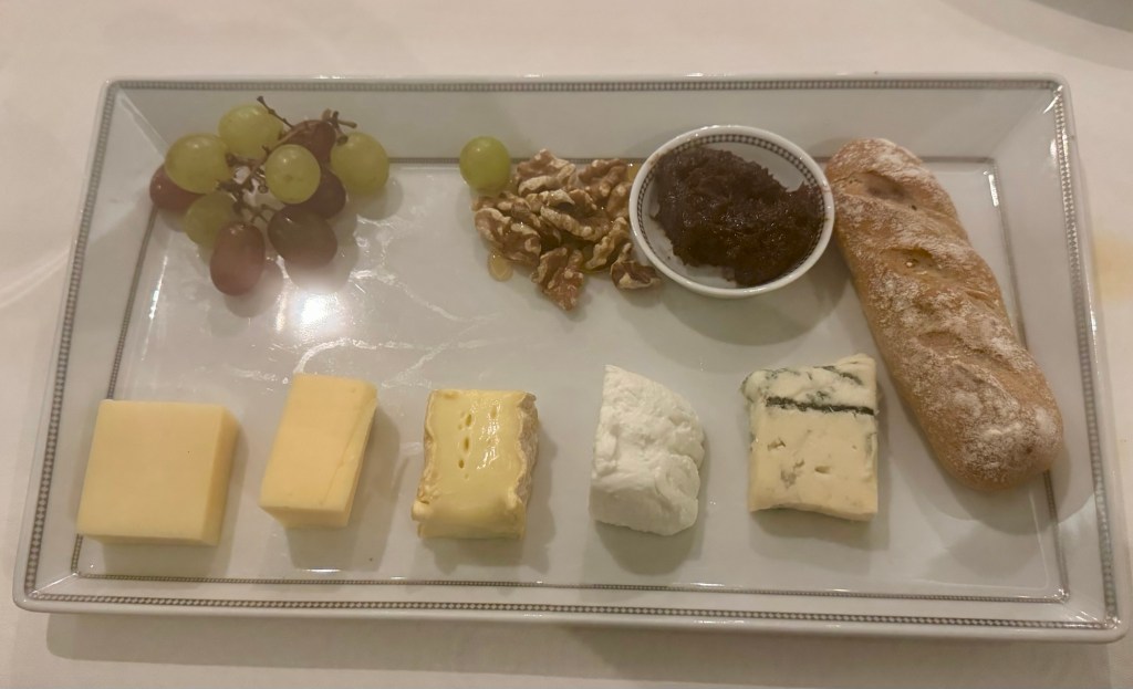 For my (one!) appetizer I got the Roasted Red Beet Carpaccio (also trying to eat more vegetables!). And for my main I had the Branzino (and of course a Lobster Tail!) and I actually skipped the dessert! I had the cheese plate for my after dinner snack. It was really good.