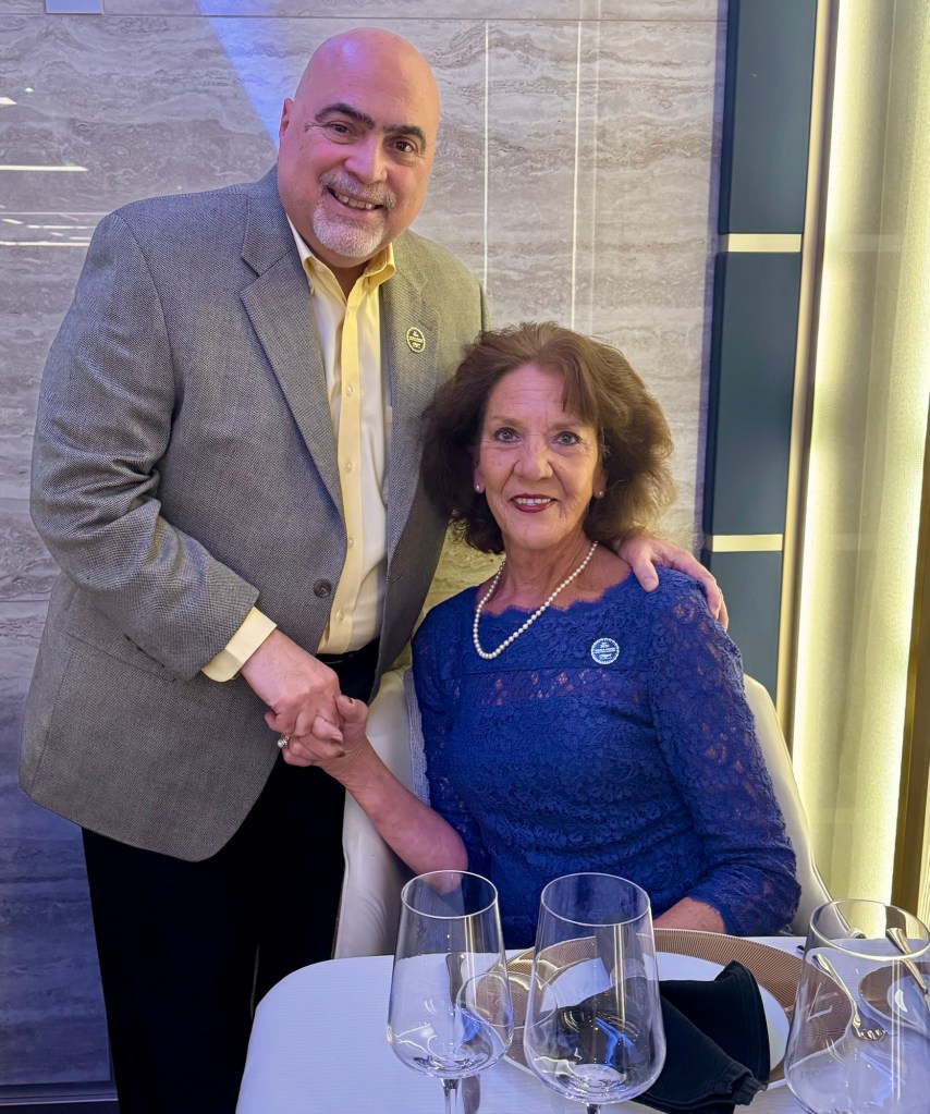 After that we got ready for our “Block Party”! On every Regent voyage, during one of the first few nights, at 6 PM they ask everyone to come out in their hallway and meet all their neighbors. It is a fun event and a good way to connect with everyone. Our next door neighbors, John and Leslie, were very nice and believe it or not they’re from Charlotte and he’s an American Airlines pilot! What are the odds?!?