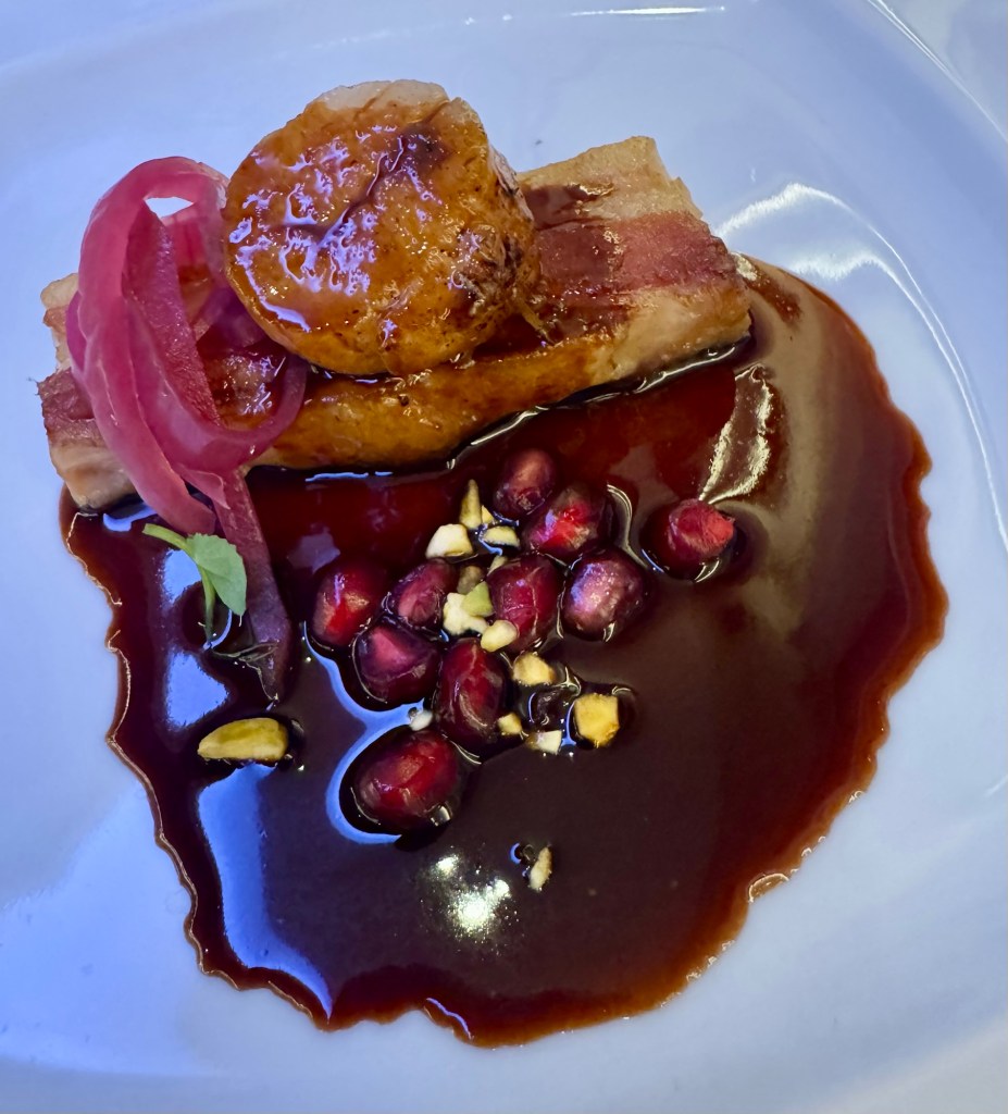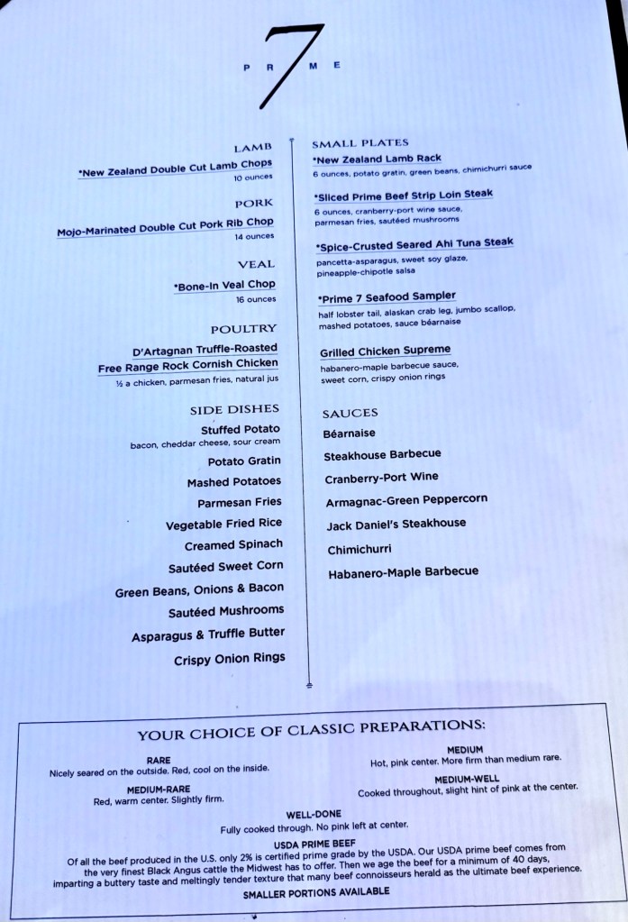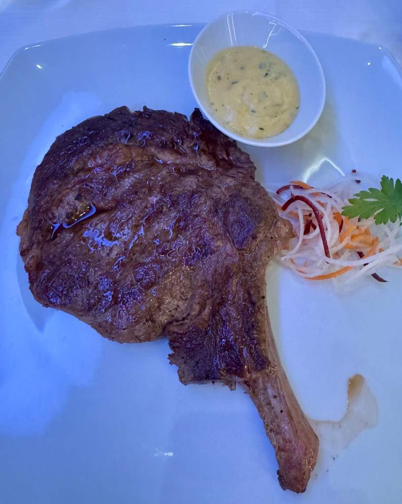 After that we strapped on our feed bags and had dinner in Prime 7, Regent’s Specialty Steak House restaurant. I would again say Regent has the best steakhouse at sea! So we cast off the diet and ate all the good stuff. I started with the Seared Scallops as my first appetizer and the Beefsteak Tomatoes and Pickled Onions as my second appetizer. For my main I had the Bone-In Ribeye cooked to perfection. I gave in and had dessert and got the Caramel Popcorn Sundae. It felt good to be bad! Lol