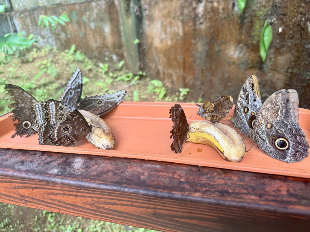 Our all day excursion was called “Aerial Tram & Rainforest Adventure”. It started with about an hour and a half scenic drive along the coast and up into the mountains. When we arrived at the Rainforest Adventures complex we started our tour in the Butterfly Garden which was an enclosed area with tons of butterflies floating around. They had these cool butterflies with big owl like eyes on their wings.