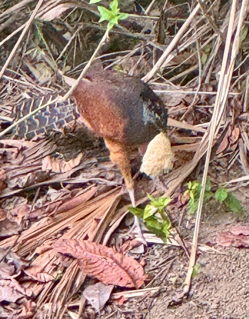 We did see a Toucan in the tree next to us, but I couldn’t get my camera ready to grab a pic. As we floated back down to the ground, we also saw a bird that looked sort of like a peacock but wasn’t. It was busy eating some yellow straw looking thing and it was cool to watch it.