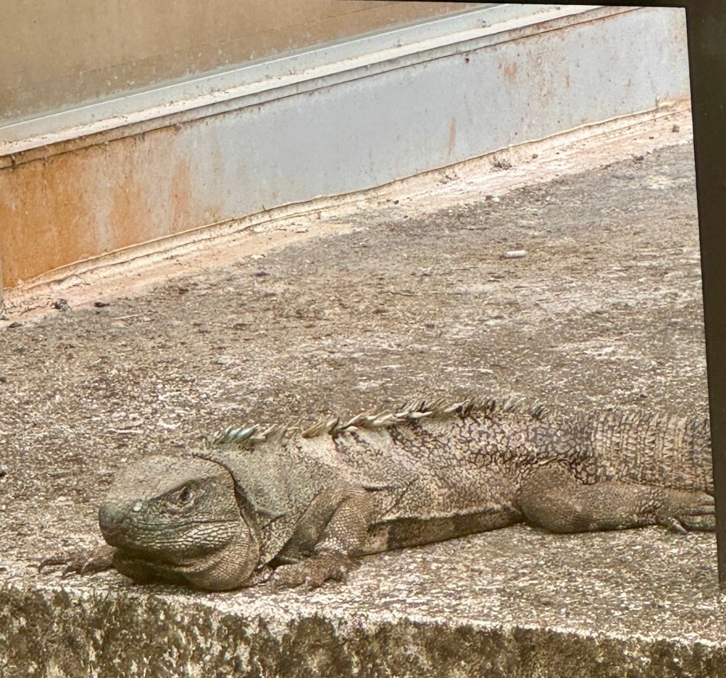 We then walked thru the Medicinal Plant Garden. There were lots of plants the locals use for various medicines but did you know the Coconut and Banana trees are not trees?? They’re herbs! Crazy. We also got to see a couple big iguanas hanging out. And we even saw little baby bats under the palm leaves. That was scary! Lol