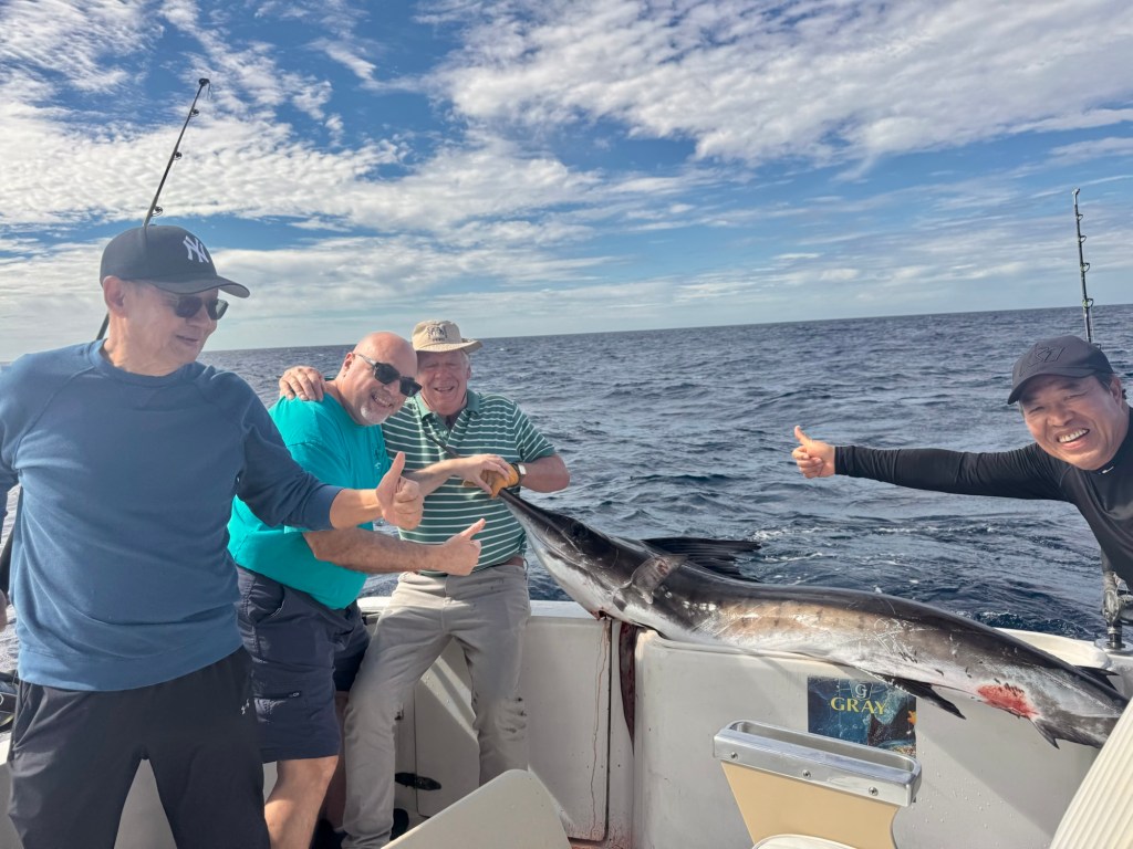 Hi Folks! We are back on land! Today we are anchored off Cabo San Lucas, Mexico. And oh what a day it was. Went deep sea fishing and caught a 6 foot long, 130 pound Marlin!!!! It was wild. I really wish I could post a video because that Marlin was fighting like crazy and leaping out of the water. Felt like I was on a Field and Stream show. Just unreal!