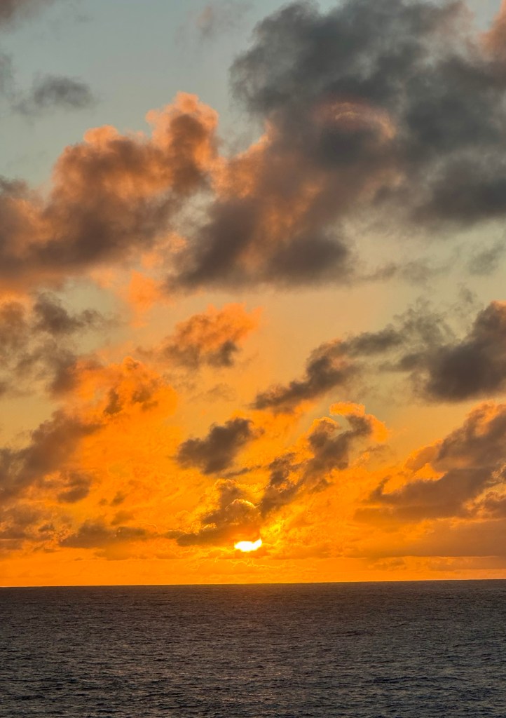 Hi All! We’ve almost made it across the Pacific Ocean to Hawaii! This is the last of our 5 sea days and tomorrow we finally dock on land in Hilo, Hawaii on the Big Island. Can’t wait!
