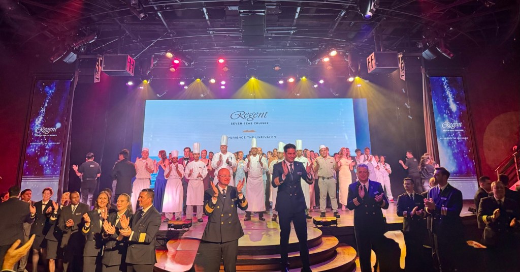 Another new activity today was the 6 PM show they call Krew Kapers. It is a show put on by various crew members from all different departments and they have to practice on their time off so it’s a lot of effort on their part. You just can’t believe the talents some of them have! It was a fun show and before the show starts, the Captain bids farewell to the 400 people who were only on this first segment of the voyage.