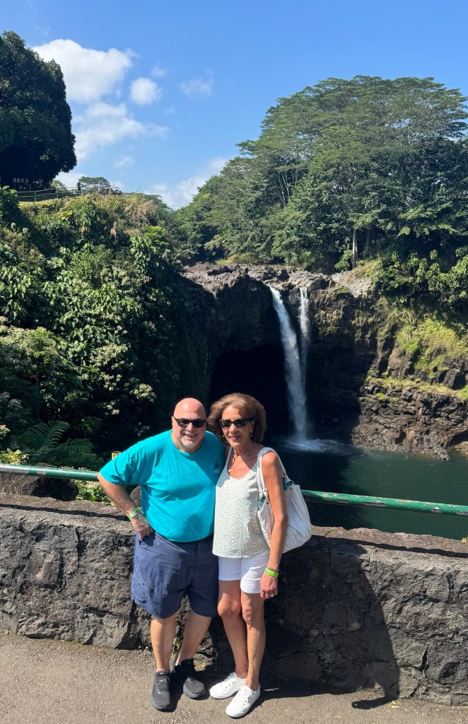 Hi Folks! We are back in the USA!!! We’re docked in Hilo, Hawaii which is on the Island of Hawaii also called the “Big Island”. Hilo overlooks Hilo Bay and Hilo has two volcanoes, Mauna Loa, an active volcano, and Mauna Kea a dormant volcano. The Hilo bay-front has been destroyed by tsunamis twice. (Yikes! Hopefully not today!). Before getting off the ship we had to go thru US Immigration but it ran very smoothly and we were done in 15 mins.
