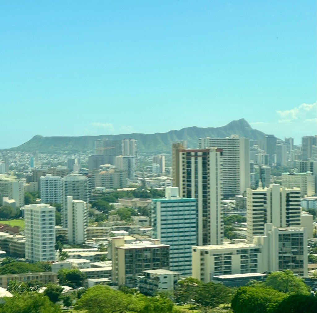 Our tour today was called “Pearl Harbor and City Highlights”. We started with a bus ride to the Pearl Harbor Historic Site. There are many different museums there to walk thru and movies to watch but the most powerful of all was visiting the USS Arizona Memorial.