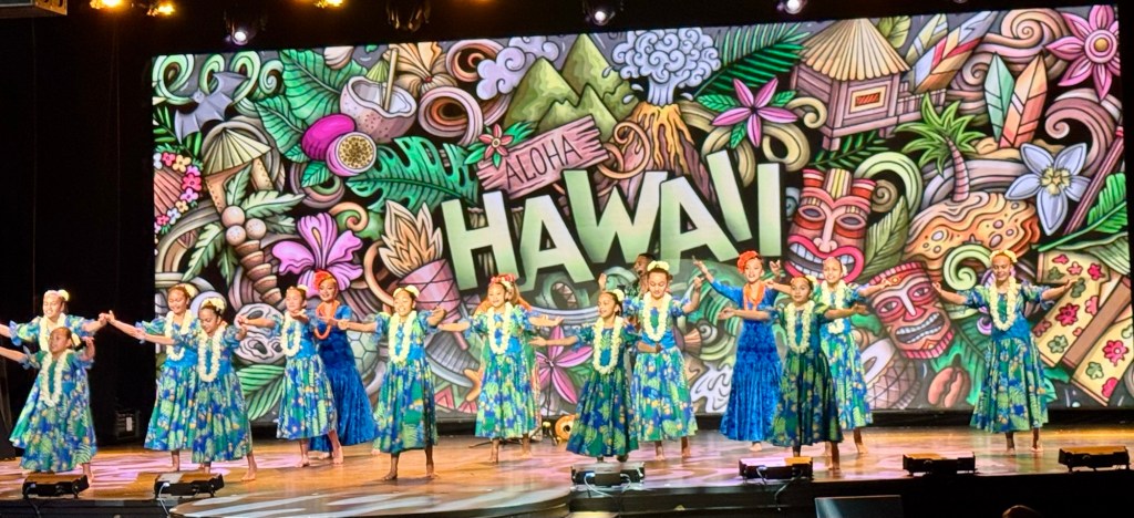Hi Again Folks! Another great night on Regent. We went to the 6 PM show which was a folkloric local show. It was called “Halau Lilia Makanoe – A Family Legacy of Hula”. It featured Hawaiin music, legends, and dance. Regent brought on local professional dancers ages 6 and up who expressed their rich culture and heritage thru stories and songs. It was such a fun show! And the little 6 year old girl was a hoot!