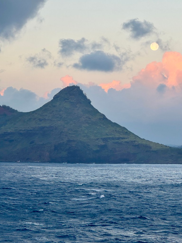Hi Gang! Today we are docked in the town of Nawiliwili which is on the Hawaiin island of Kauai. They get lots of rain here which is why they call it the Garden Isle. It has a location that’s known as the wettest place on earth and one year they got 721 inches of rain! But we got lucky and avoided the rain. The island is 80% mountains and is the oldest and northern most Hawaiin island.