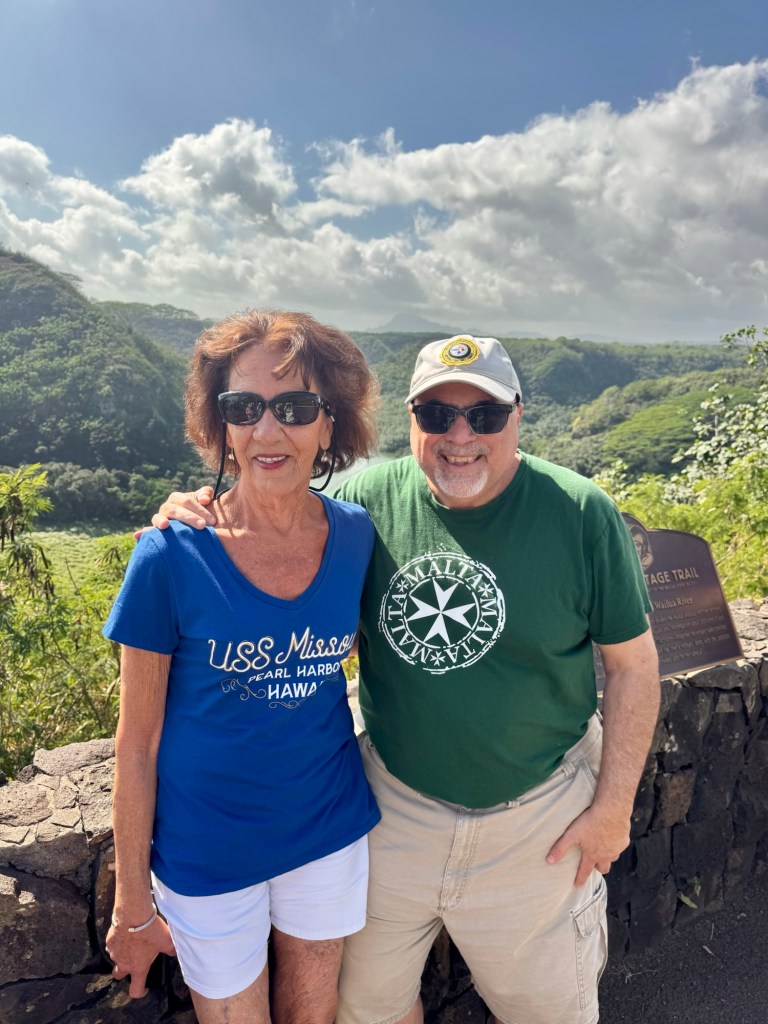 But there was a major event today! Big news… very Big news… Kathy and I got married today!! OK, OK, kinda sorta kinda… we got married Hawaiin style! Lol. The legend of Fern Grotto is that when they sing the Hawaiin wedding song, after the song if you kiss the person next to you, you’re considered married Hawaiin style! Not sure if that hold up in court!
