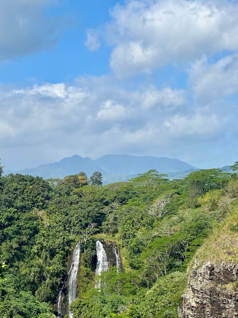 After Fern Grotto we went to visit Opaeka’s Falls. It is 151 feet tall and 40 feet wide. Really nice. On one side was the Falls on the other side was the river we had just sailed down!