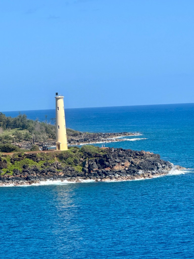 Leaving the port of Kauai we got some pics of the beautiful Ninini Point Lighthouse. It is 86 feet tall and was built in 1897 and rebuilt in 1906. It overlooks Nawiliwili Bay and is right near the Lihu’e Airport. We also saw several whales! I didn’t get many good pictures but did catch the tail of one of them!
