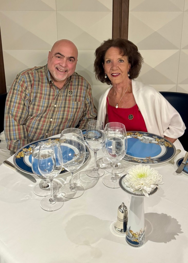 Right before dinner they had the “Block Party”. That’s where we all come into the hallway and meet our neighbors. Our next door neighbors were really nice and are from Oklahoma City. We also met people from Ottawa, Canada, Arizona and New York. It’s a great way to meet some of the other passengers.