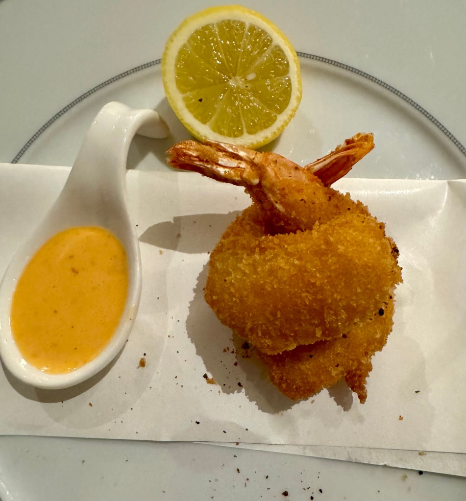 After that we had dinner in Compass Rose. I had the Panko Coated Tiger Prawns and the Risotto Primavera for my starters. For my main I had the Alaskan Halibut (Ya know, Alaska’s just straight up from Kauai!) and for dessert I had the Malva Pudding. I know I keep repeating this but the food here is always excellent! Like eating at a Michelin star restaurant every night. How lucky are we?