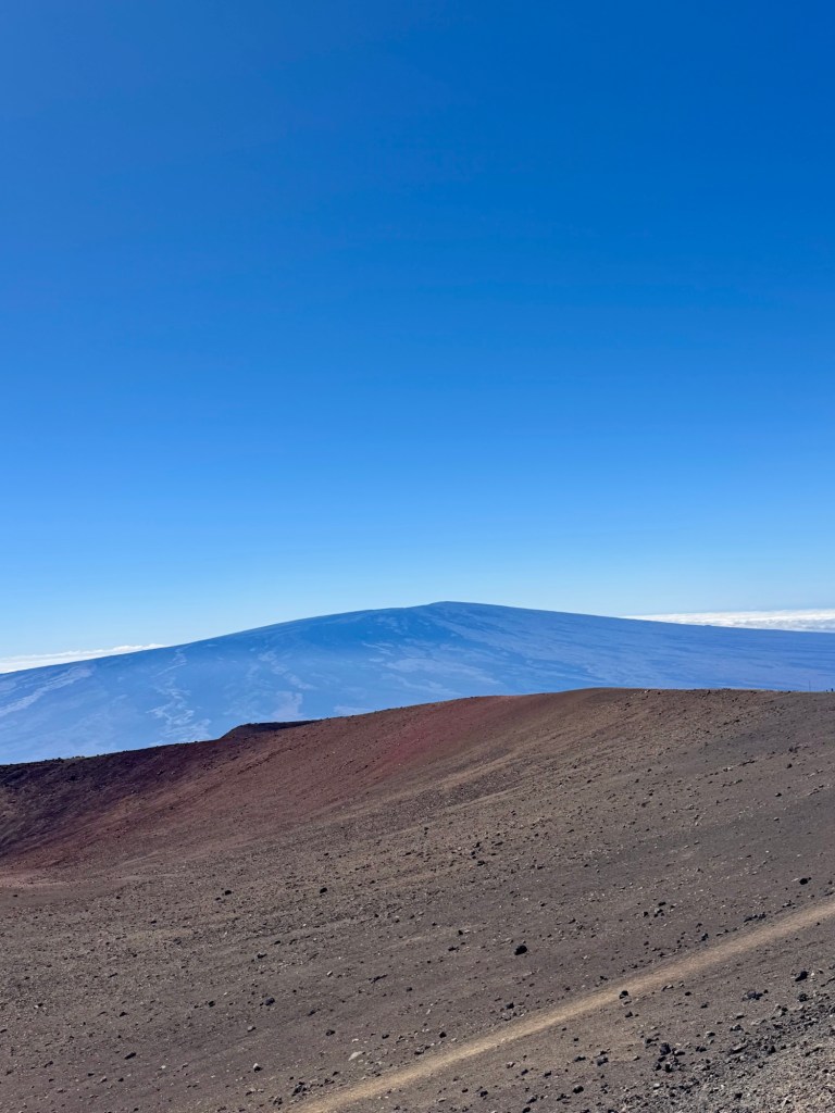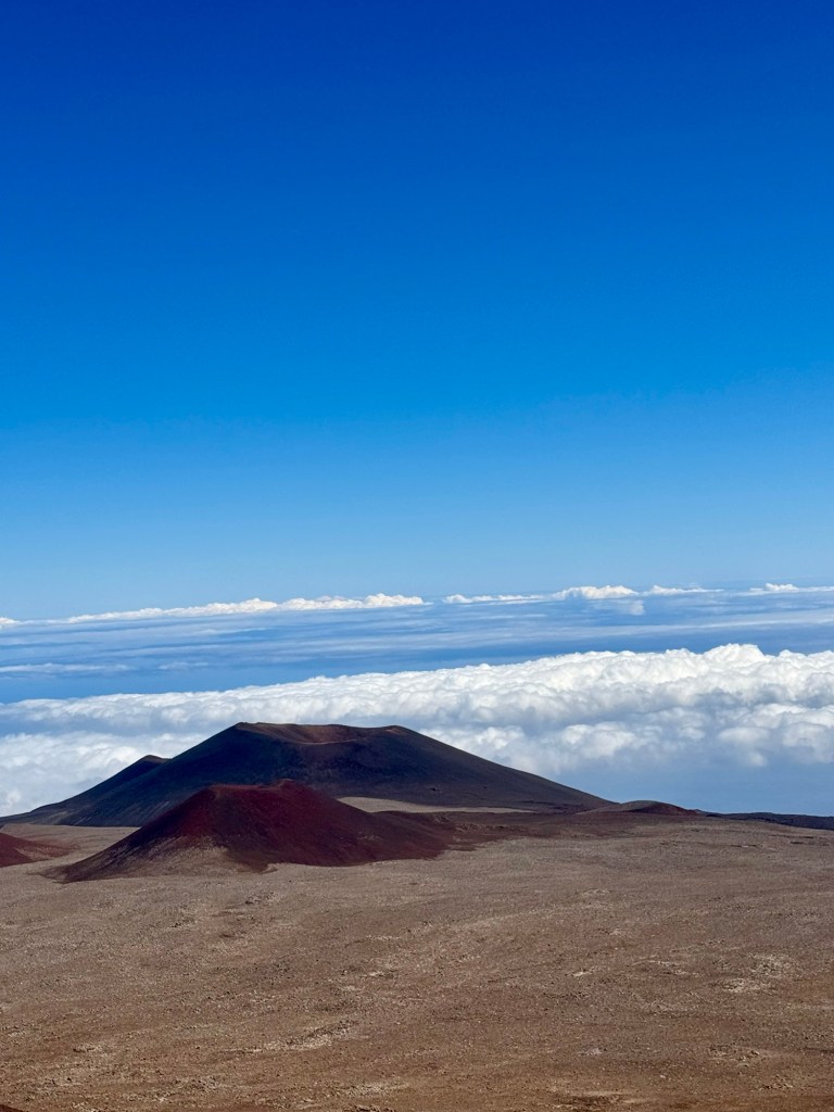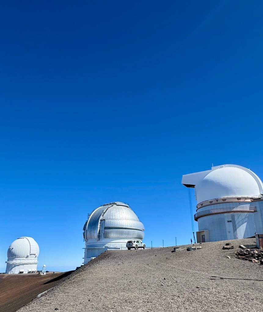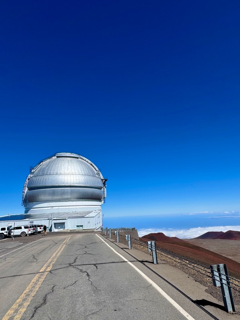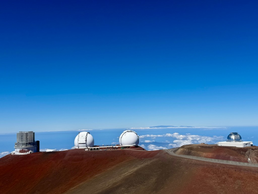 Mauna Kea is a dormant volcano but right across from it is Mauna Lua which is the world’s largest active volcano. Thank goodness it didn’t erupt while we were there!Mauna Kea is the tallest peak within 3,000 miles. So in essence it’s at the top of the Pacific Ocean. It is the most geographically isolated mountain in the world. Because of that it has many Observatories at the top since it’s above the cloud level and there’s no light pollution. At the summit, we could look across the ocean and see the island of Maui.