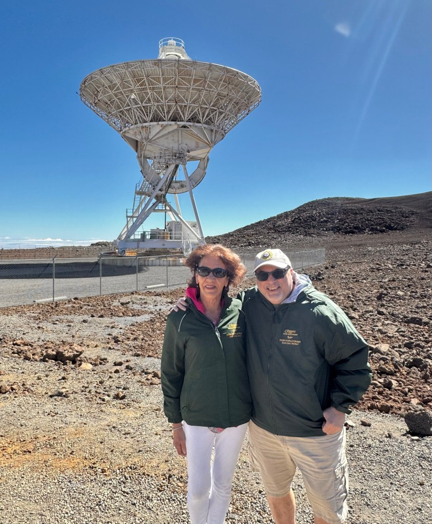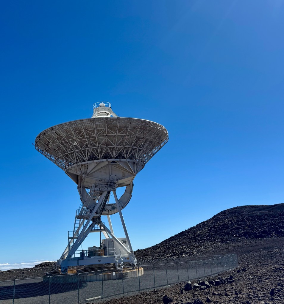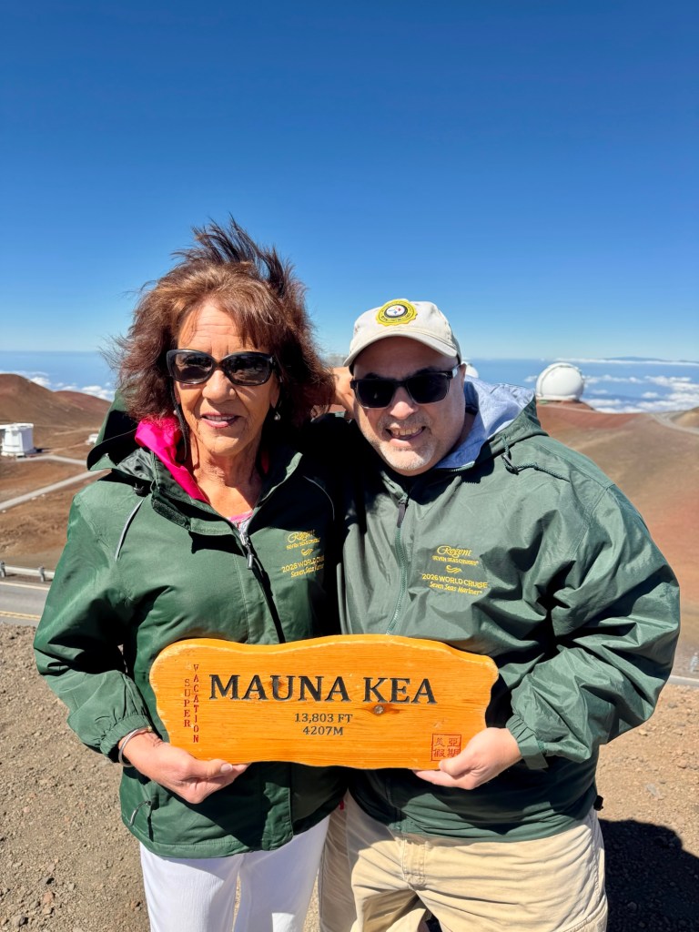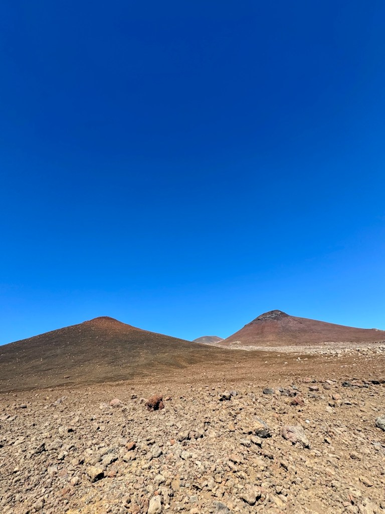 Mauna Kea is a dormant volcano but right across from it is Mauna Lua which is the world’s largest active volcano. Thank goodness it didn’t erupt while we were there!Mauna Kea is the tallest peak within 3,000 miles. So in essence it’s at the top of the Pacific Ocean. It is the most geographically isolated mountain in the world. Because of that it has many Observatories at the top since it’s above the cloud level and there’s no light pollution. At the summit, we could look across the ocean and see the island of Maui.
