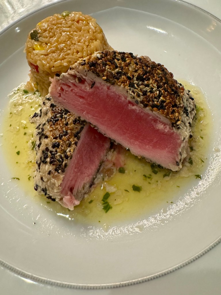 For dinner I had the Chicken and Vegetable Spring Roll for my starter, the Ahi Tuna Steak for my main, and the Chocolate Profiteroles for my dessert. All yummy as always!