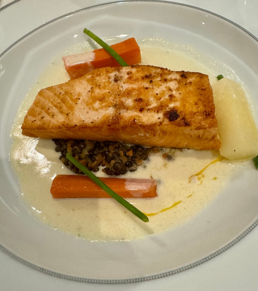 Of course the great food was flowing too! I had the Yellowfin Tuna Carpaccio for my starter and the Salmon for my main. For dessert I had the Creme Brûlée. Once again, Regent proved they have the best main dining room at sea!
