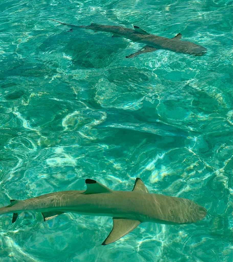 Actually it was an amazing excursion and we got to swim with tons of Blacktip Sharks as well as lots of Sting Rays. How cool is that? We were both a little concerned before we got into the water but it was shallow and you could stand up and the sharks would just glide by you.