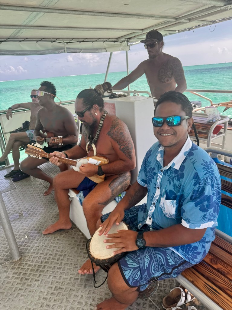 We had snorkel masks so we could put our head under and just watch them swim by. The sting rays pretty much stayed on the ocean floor so you had to make sure you didn’t step on them! And our excursion crew was great. The main tour guide was hilarious and three of them were great musicians on the ukuleles and bongos. So fun!