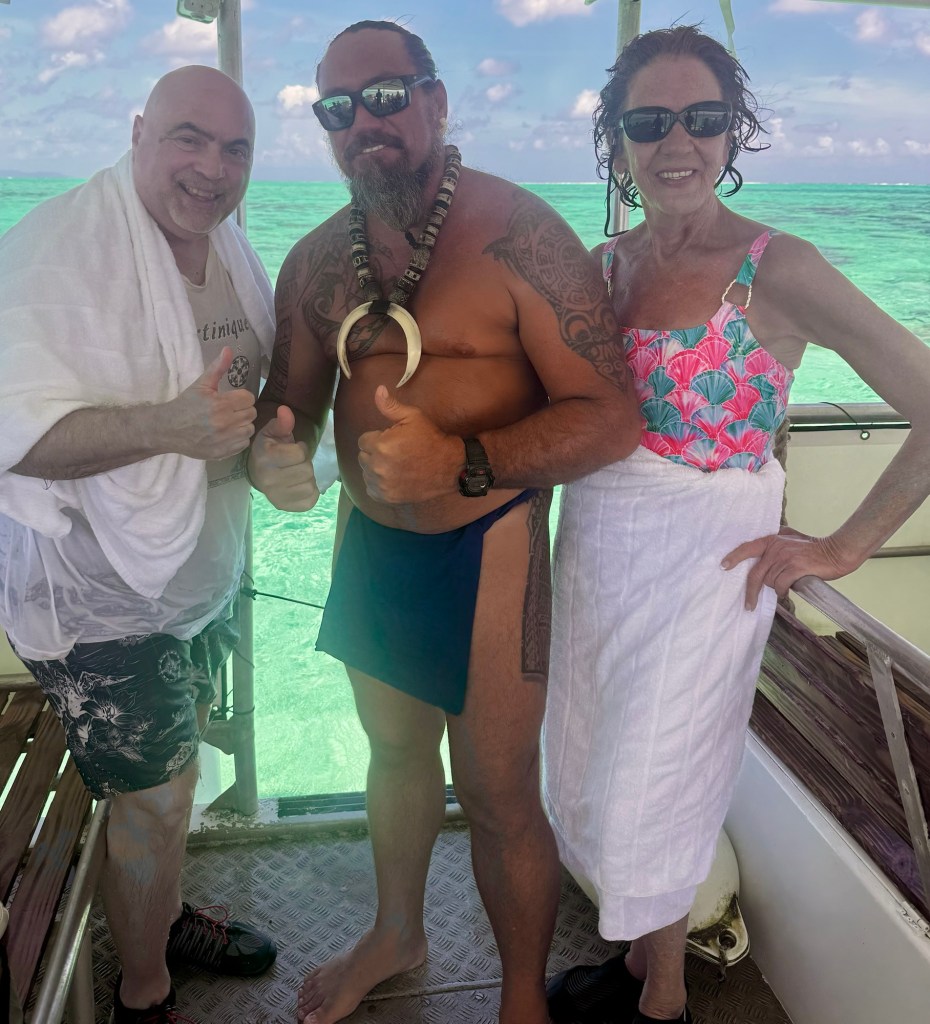 Hi All! Happy Valentine’s Day! And how cool that we got to stay overnight in a romantic place like Bora Bora. So I decided to get something extra special for Kathy for Valentine’s Day so I got her a “swim with the sharks” excursion. Pretty romantic right?? Lol
