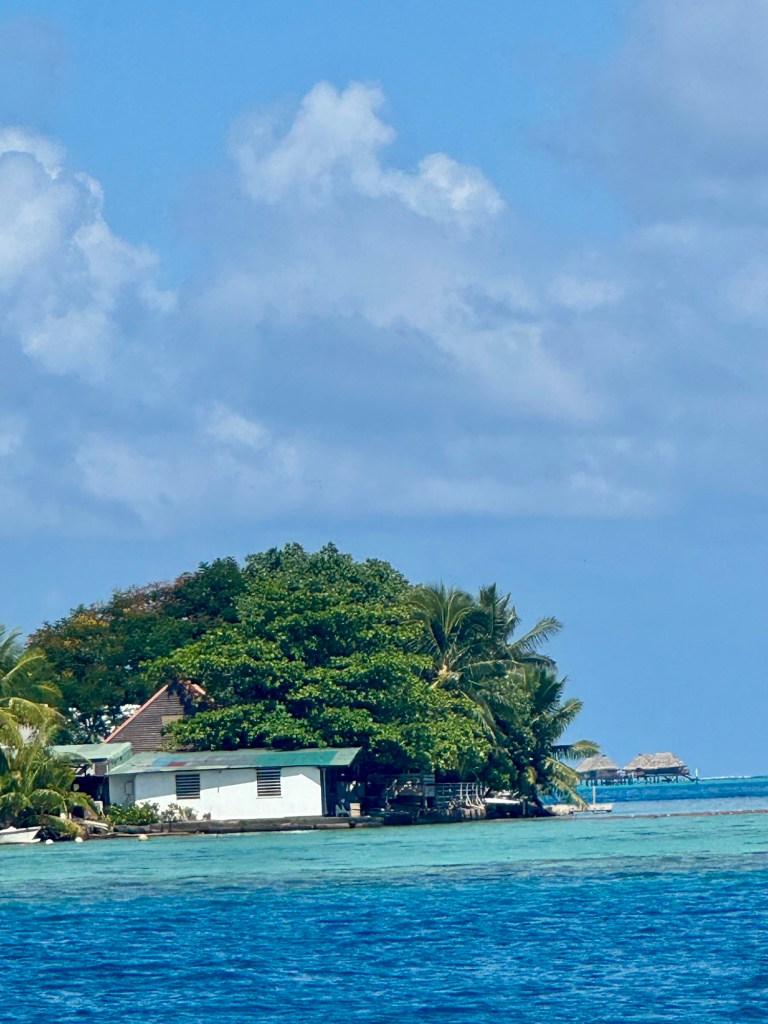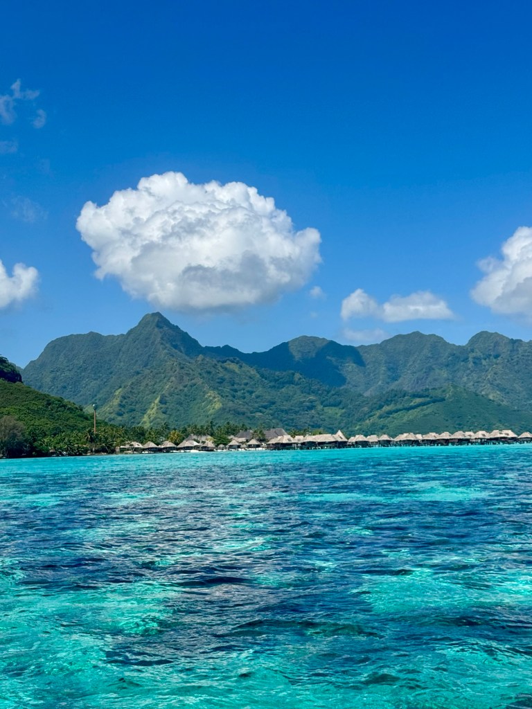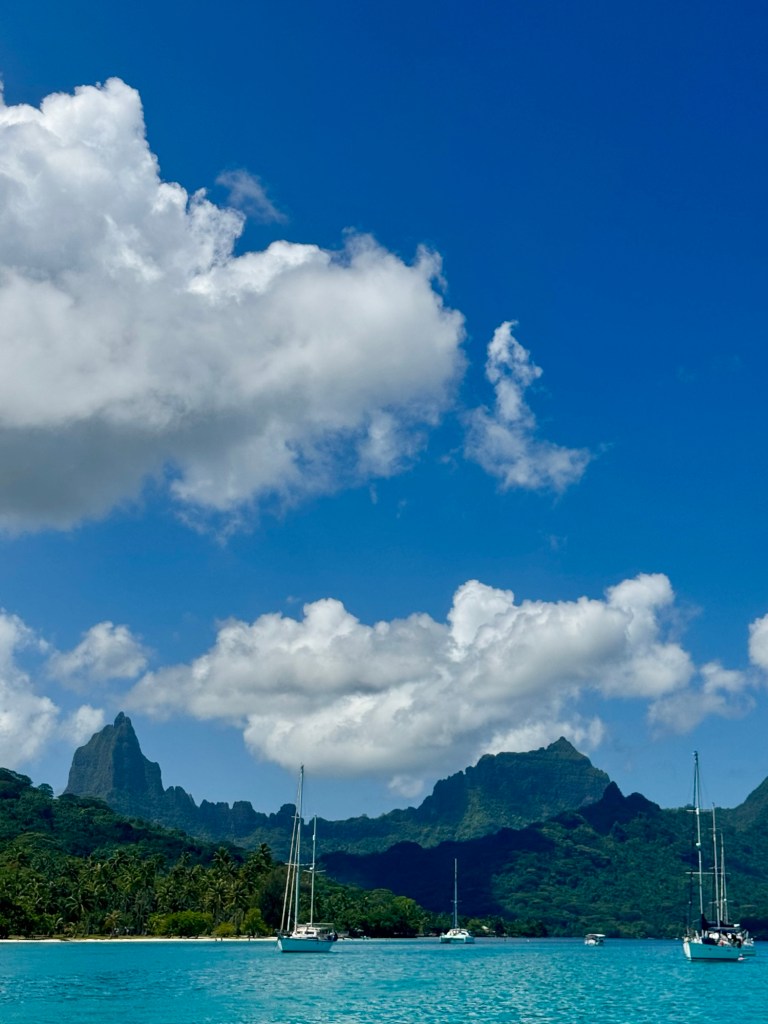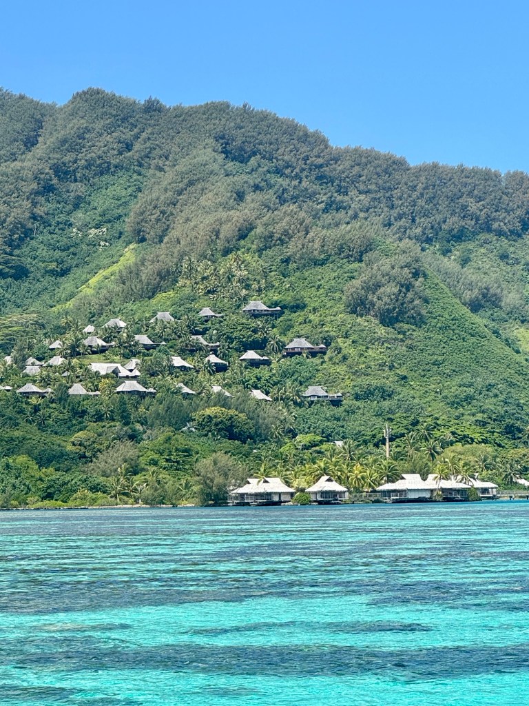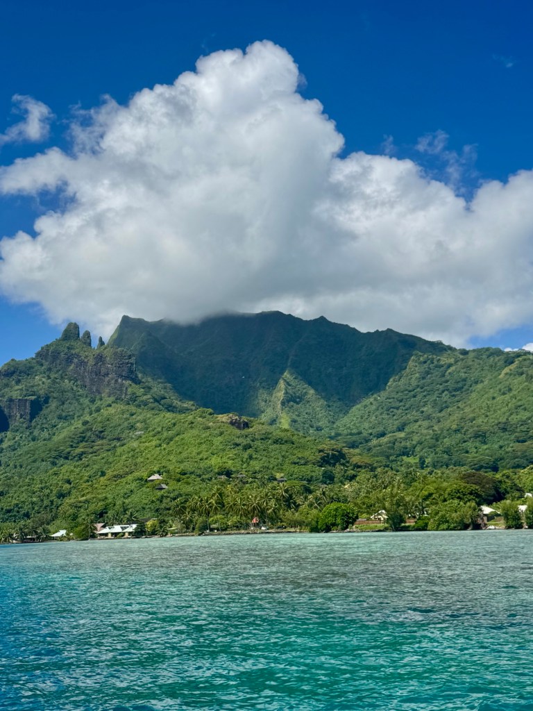 The island of Moorea was formed as a volcano almost 2.5 million years ago. Moorea is 10 miles across and has two small, nearly symmetrical bays on the North shore. The one to the West is called Opunohu Bay and the one to the East is Cook’s Bay. The highest point on the island is Mount Tohivea and can be seen from Tahiti.