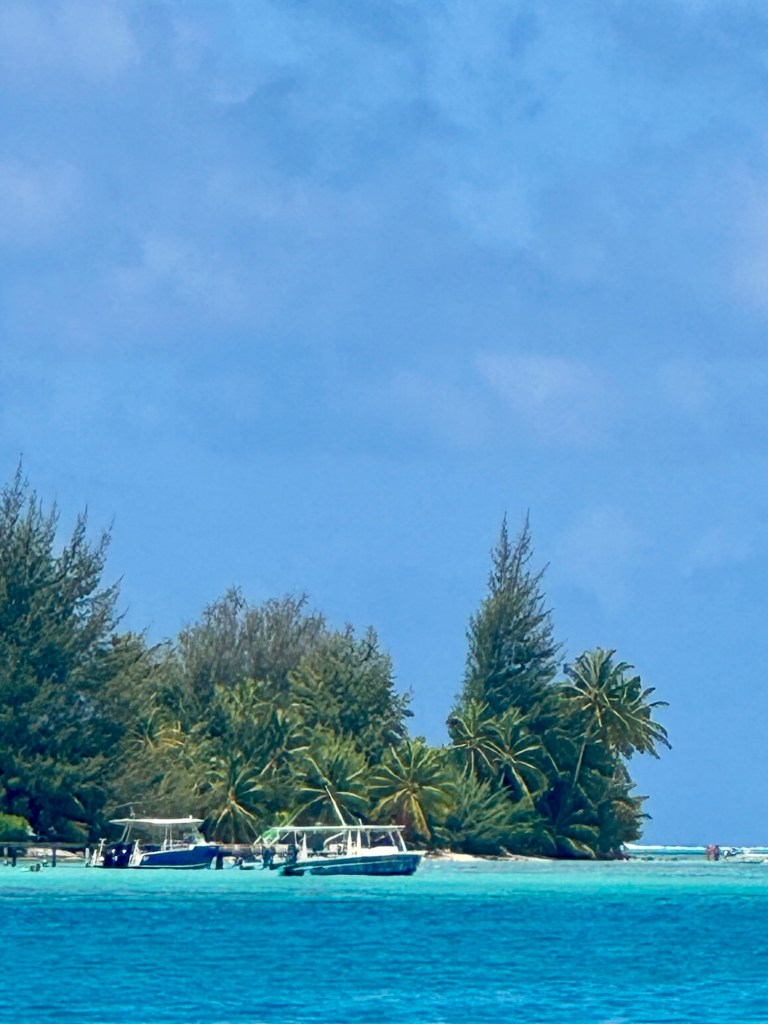 We had lots to eat and had so much we fed some to this cute black lab that supposedly swam over from the Motu across the water. You could tell she recently had puppies but we didn’t see them. Of course we became her best friend and she sat right next to us the whole time.