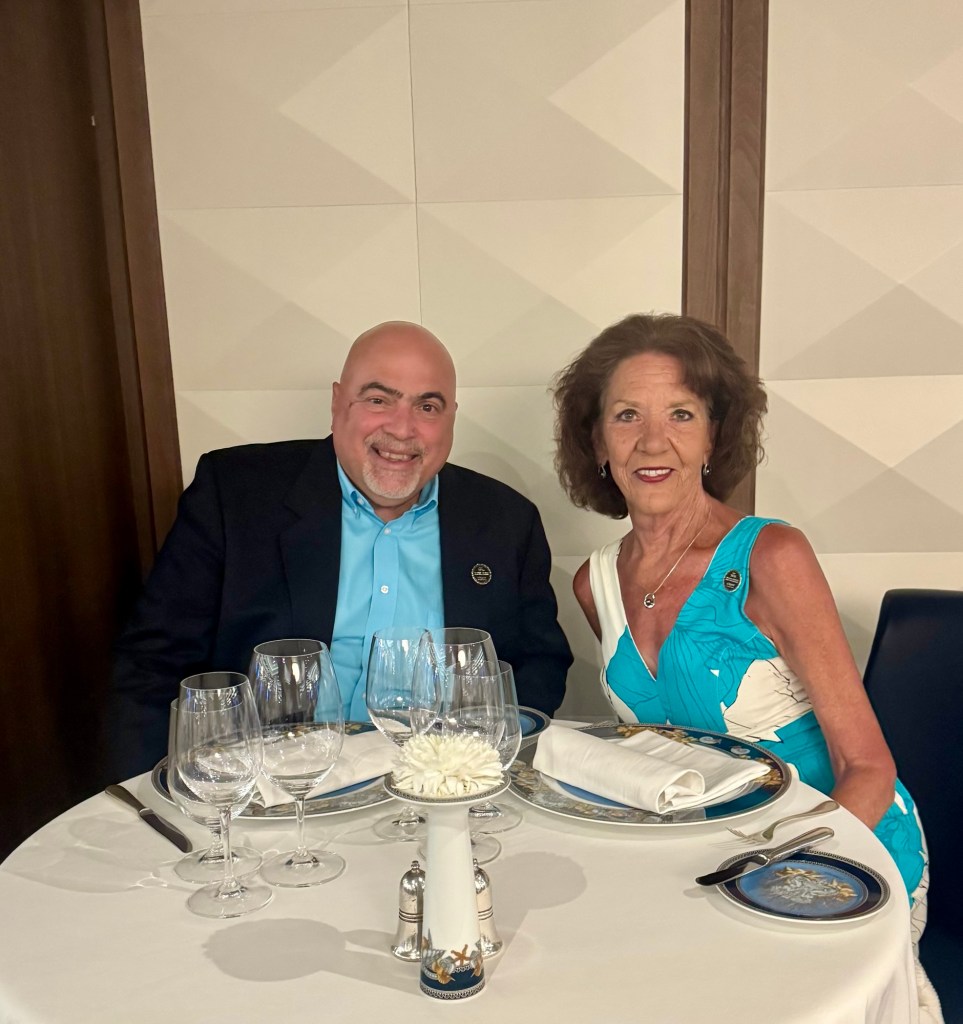 Hi Again All! We had another fun night with lots of activities. We started with the Captain’s Welcome Reception at 6 PM. Captain Abhi, our prior Captain who we loved, left the ship yesterday to go on a much needed vacation and will return later on the world cruise in Capetown, South Africa to take us back to Miami.