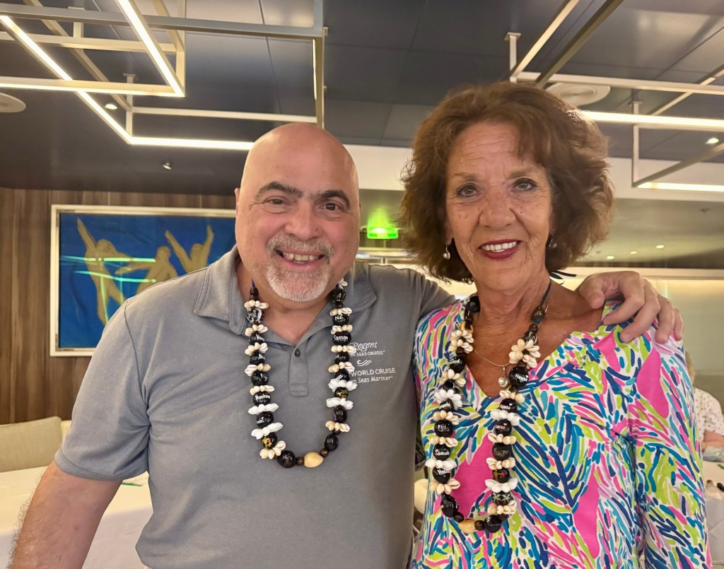 Regent had a pre-dinner event just for all the World Cruisers called “A Celebration of French Polynesia”. We got dressed up in our island gear, wore our leis and boogied down to the island rhythms. It was a fun party!